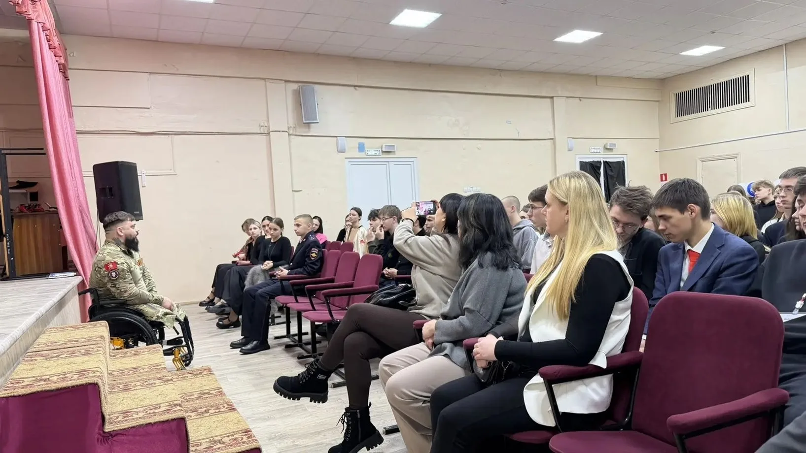 Евгений Викторович рассказал старшеклассникам школы №1 о себе, о трудностях и испытаниях, с которыми ему пришлось столкнуться во время службы, но главное - о бесценном опыте товарищества, взаимовыручке и верности воинскому долгу. Он ответил на интересующие ребят вопросы.