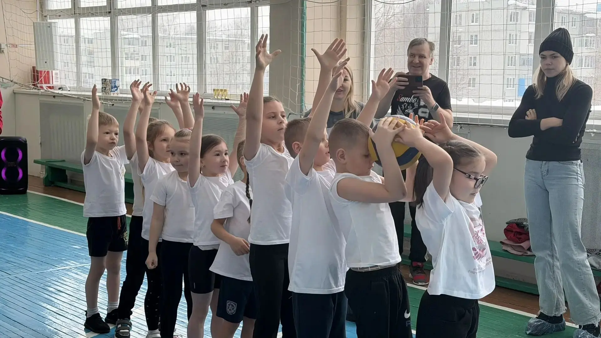 Сегодня они стали болельщиками состязаний ветеранских команд, перенимая опыт ветеранов игры в их любимый волейбол, вместе со своими учителями физкультуры Макаровой Г.М., Воскобойник А.И. и преподавателем-организатором ОБЗР Неклюдовым И.Г.