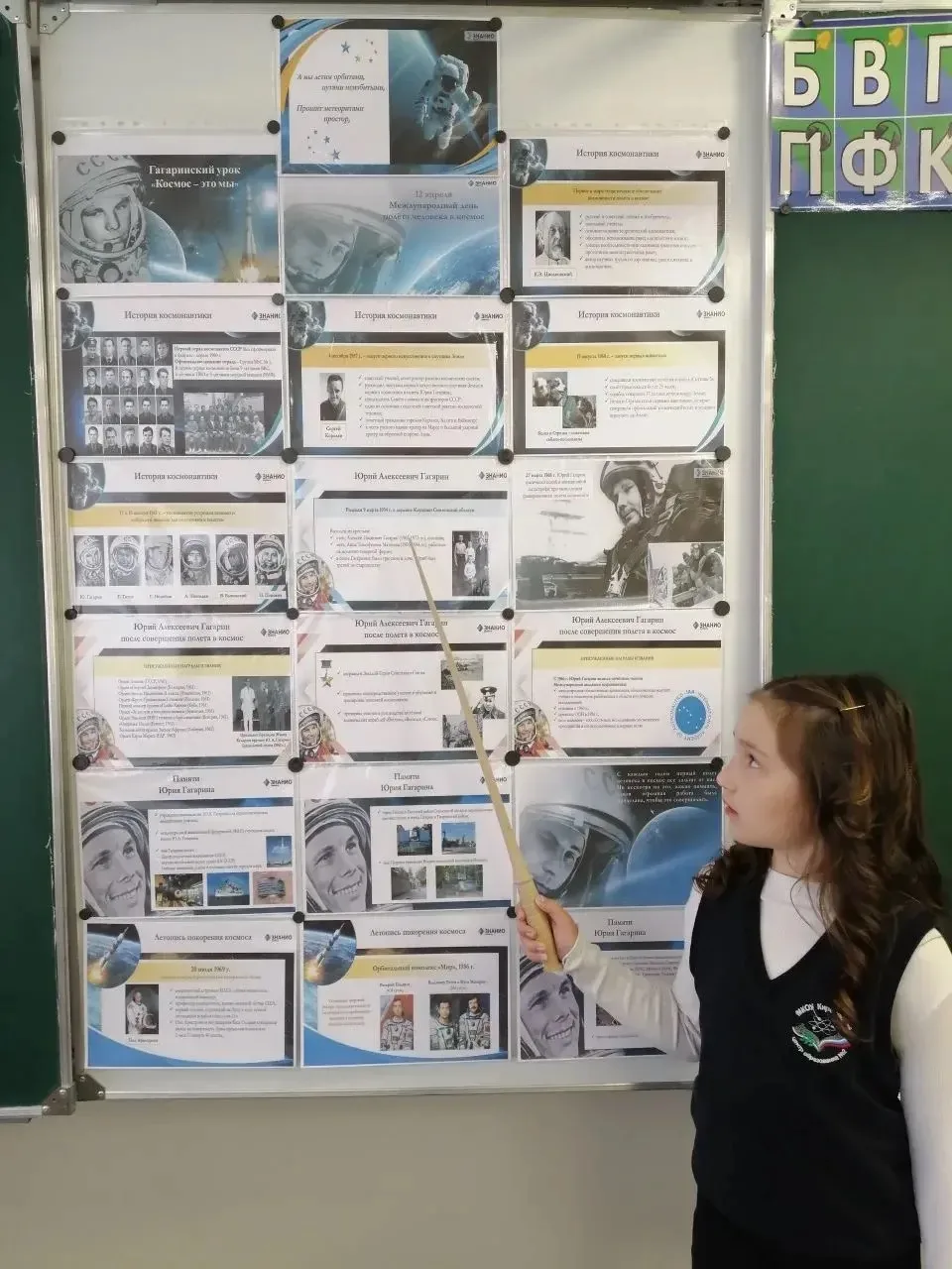 В ходе занятия школьники вспомнили важнейшие этапы освоения космического пространства: