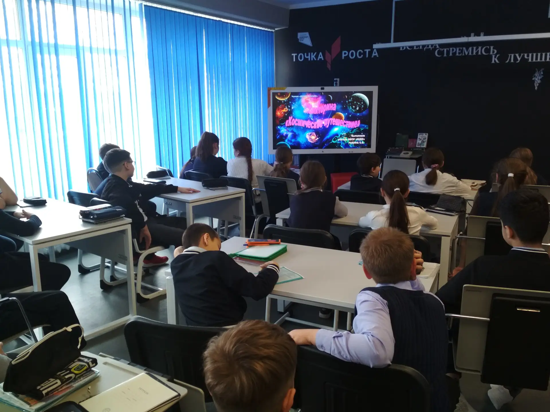 В 2026 году в России впервые проходит всероссийская акция – Неделя космоса. Она приурочена к 65-летию первого полёта человека в космос — Юрия Гагарина. Это масштабная национальная инициатива, которая объединяет сотни событий по всей стране и направлена на популяризацию достижений отечественной космонавтики и повышение престижа профессий, связанных с космической деятельностью. Ученики нашей школы активно принимают в ней участие. В Центре «ТОЧКА РОСТА» в рамках национального проекта «Молодёжь и дети» четвероклассники совершили «Космическое путешествие». Сначала дети посетили выставку книг о космосе и его покорителях, познакомились с произведениями писателей-фантастов, мечтавших о далеких мирах. Затем посмотрели фильм, рассказывающий о нашей солнечной системе. Ребята получили представление о масштабах Солнечной системы и о её постоянных объектах и гостьях-кометах. В завершение мероприятия обучающиеся ответили на вопросы викторины, блеснув знаниями о планетах и космонавтах, о звездах и космодромах, о созвездиях и затмениях. Молодцы! Некоторые школьники высказали желание побывать в космосе.