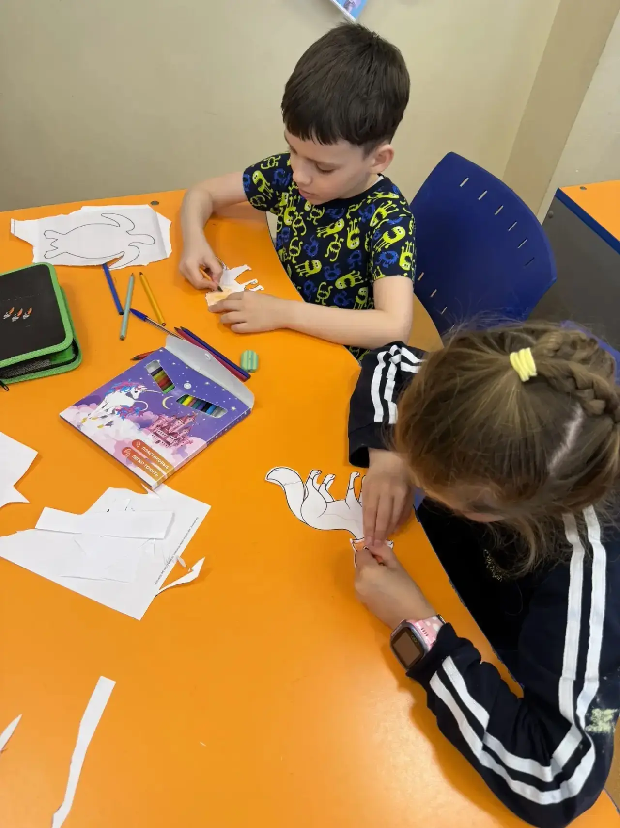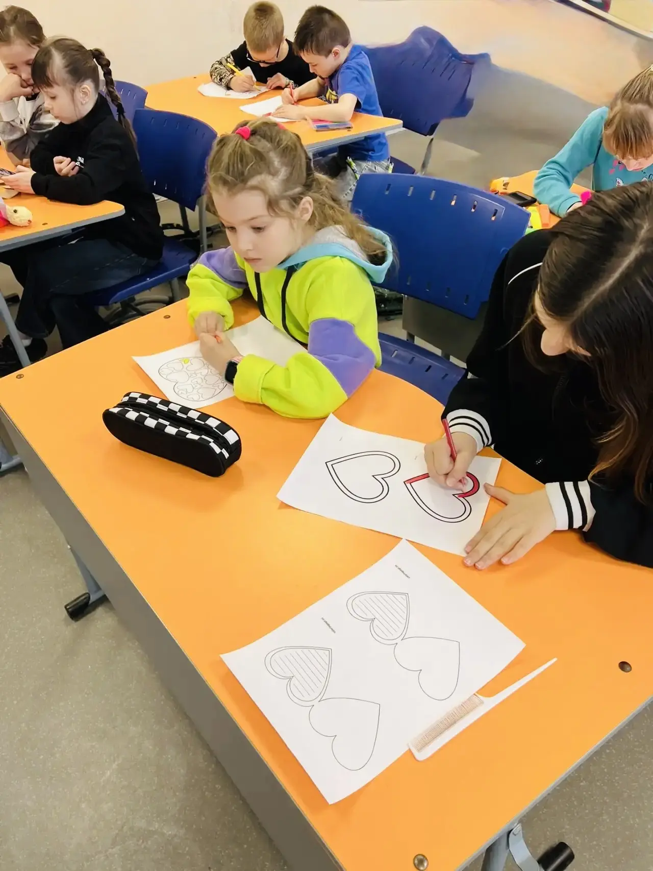 Далее дети активно поработали над развитием этих процессов, выполняя нестандартные задания: находили закономерности, сравнивали изображения, воссоздавали последовательности по памяти, решали логические задачи на внимание. Особое внимание было уделено тренировке кратковременной и долговременной памяти. Психолог провёл комплекс упражнений, направленных на развитие концентрации и устойчивости внимания. Дети поиграли в игру «У оленя дом большой», где нужно было быстро реагировать на изменения в словах, поддерживая внимание на высоком уровне. В другой игре — «Угадай, кто я» — ребята учились выделять ключевые признаки, анализировать и строить логические цепочки, что способствовало развитию мышления и речи. Все упражнения были подобраны так, чтобы быть одновременно полезными и увлекательными. Ребята с интересом включались в процесс, проявляя сообразительность, находчивость и командный дух. Такой подход помог не только раскрыть потенциал каждого, но и укрепить уверенность в своих силах.