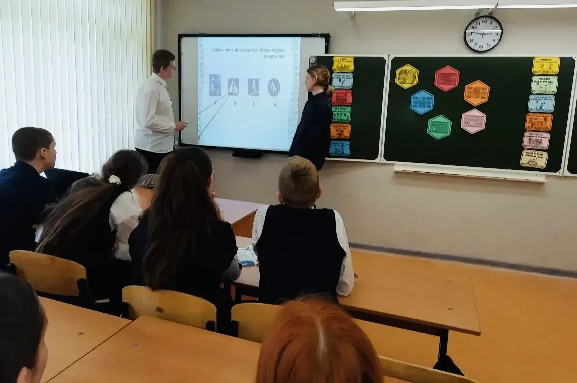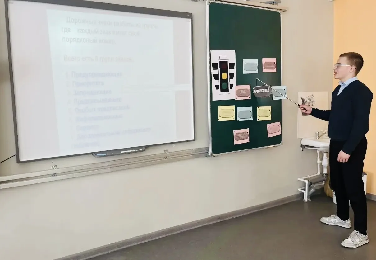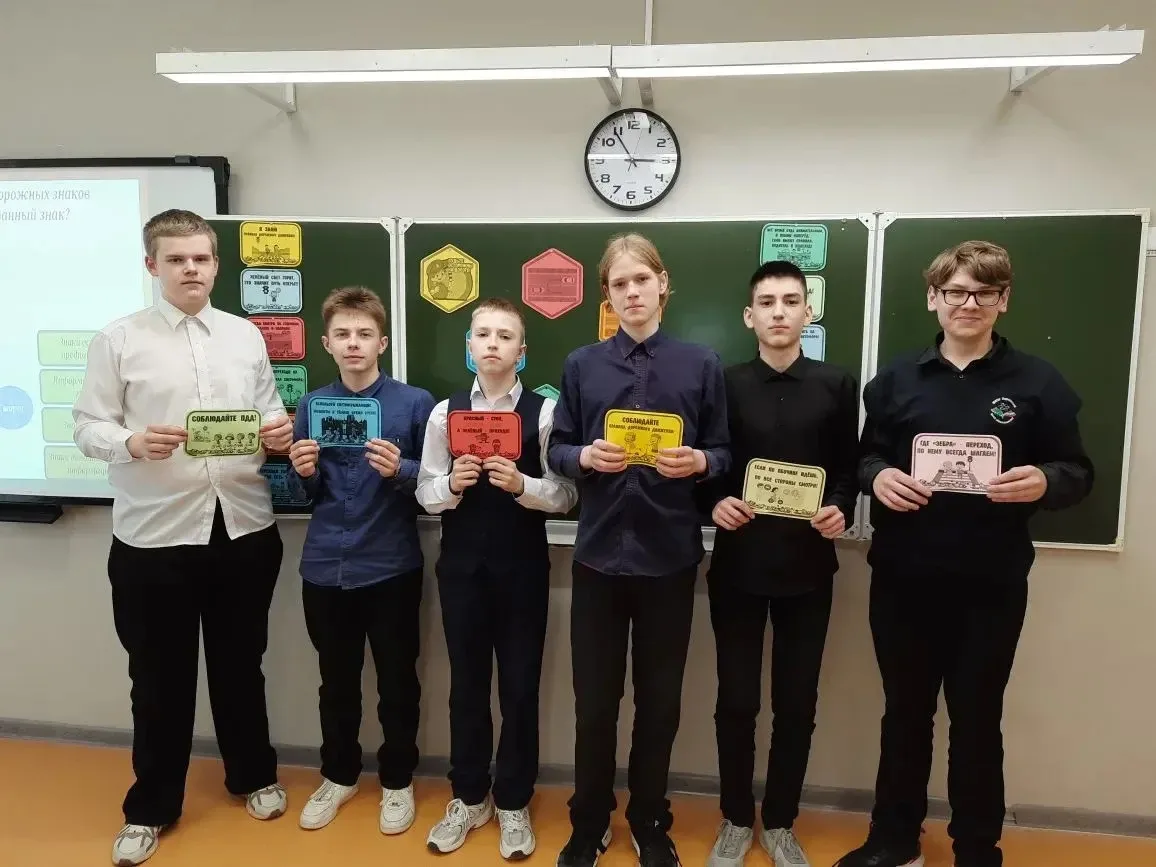 Обучающиеся 9В класса под руководством Борисовой Е.П. приняли участие в мероприятии, организованном в рамках национального проекта «Молодёжь и дети» по профилактике правил дорожного движения. Урок начался с изучения памятки «Ты пассажир», где дети разобрали основные правила поведения в транспортных средствах, научились правильно выбирать место для посадки, соблюдать безопасность при открытии дверей и оценивать обстановку вокруг себя. Далее последовал анализ дорожных знаков: участники определили, к каким категориям относятся те или иные предупреждающие, запрещающие и информационные таблички, поняли их значение в повседневной жизни. На следующем этапе ребята проверили свои знания в форме викторины, где важно было не только угадать правильный ответ, но и аргументировать его. Каждый вопрос был тщательно продуман: от элементарных вопросов о светофоре до сложных ситуаций, связанных с поведением пешеходов в условиях ограниченной видимости. Такой подход позволил не просто закрепить материал, но и развить навыки критического мышления, способность быстро оценивать дорожную обстановку. Полученные знания станут фундаментом для ответственного отношения к дороге. Уверенные пешеходы — это не только безопасность, но и личная ответственность. Профилактическая работа, проведённая в классе, — это шаг к формированию культуры устойчивого и безопасного передвижения на дорогах.