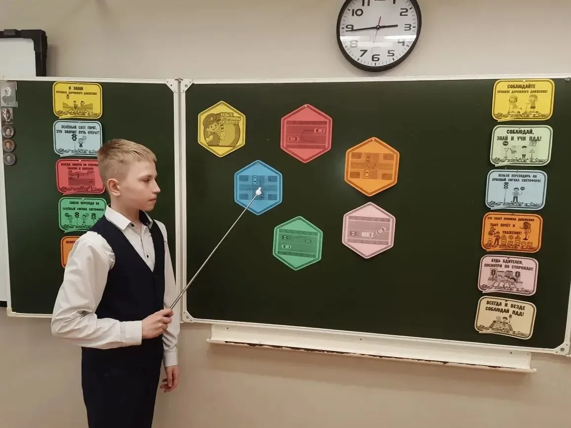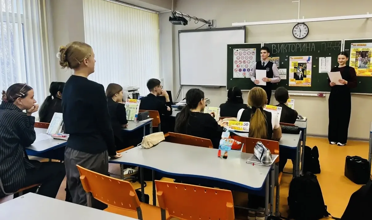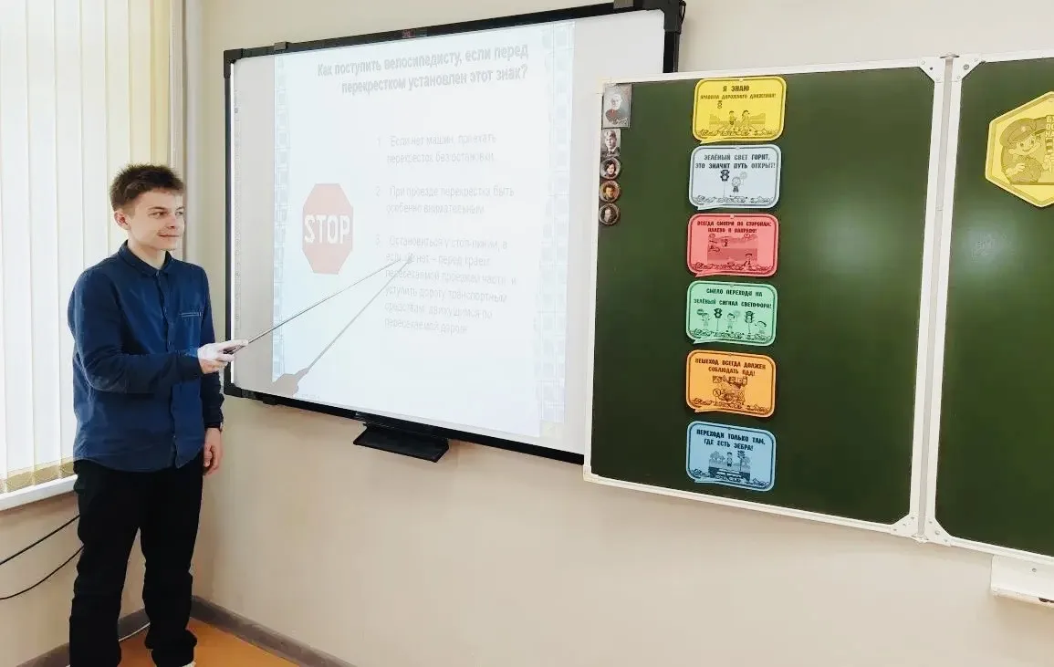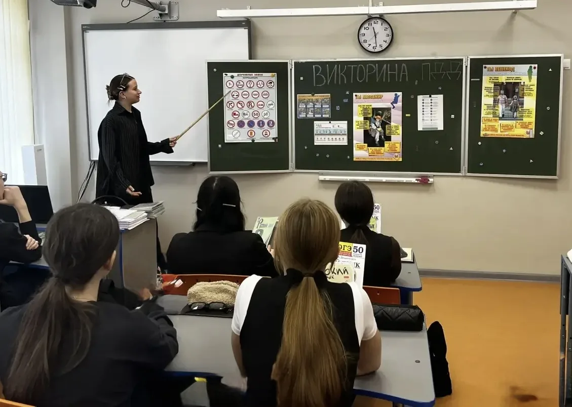 Обучающиеся 9В класса под руководством Борисовой Е.П. приняли участие в мероприятии, организованном в рамках национального проекта «Молодёжь и дети» по профилактике правил дорожного движения. Урок начался с изучения памятки «Ты пассажир», где дети разобрали основные правила поведения в транспортных средствах, научились правильно выбирать место для посадки, соблюдать безопасность при открытии дверей и оценивать обстановку вокруг себя. Далее последовал анализ дорожных знаков: участники определили, к каким категориям относятся те или иные предупреждающие, запрещающие и информационные таблички, поняли их значение в повседневной жизни. На следующем этапе ребята проверили свои знания в форме викторины, где важно было не только угадать правильный ответ, но и аргументировать его. Каждый вопрос был тщательно продуман: от элементарных вопросов о светофоре до сложных ситуаций, связанных с поведением пешеходов в условиях ограниченной видимости. Такой подход позволил не просто закрепить материал, но и развить навыки критического мышления, способность быстро оценивать дорожную обстановку. Полученные знания станут фундаментом для ответственного отношения к дороге. Уверенные пешеходы — это не только безопасность, но и личная ответственность. Профилактическая работа, проведённая в классе, — это шаг к формированию культуры устойчивого и безопасного передвижения на дорогах.