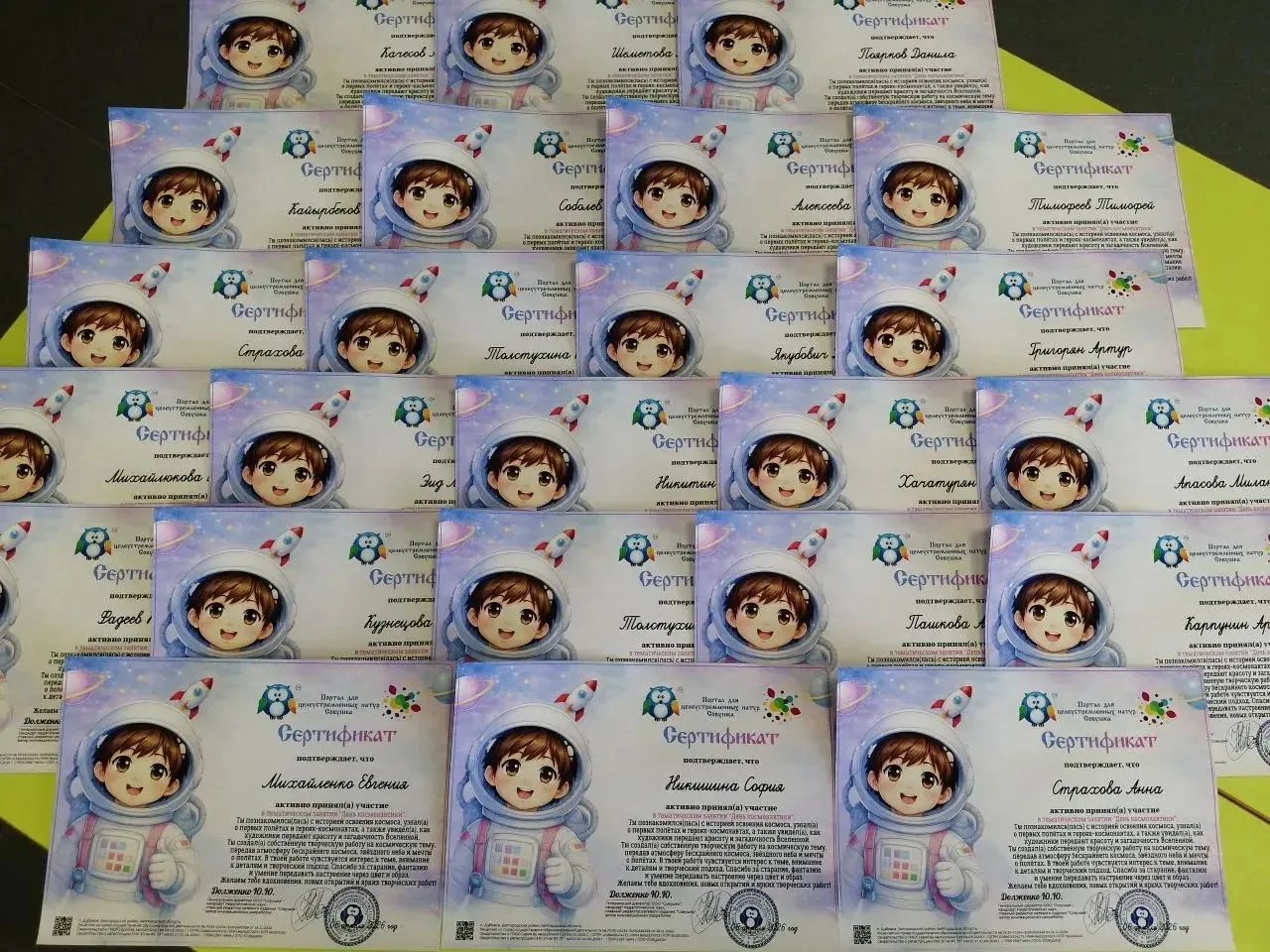 Тематическое занятие завершилось выставкой работ и вручением красочных именных Сертификатов.