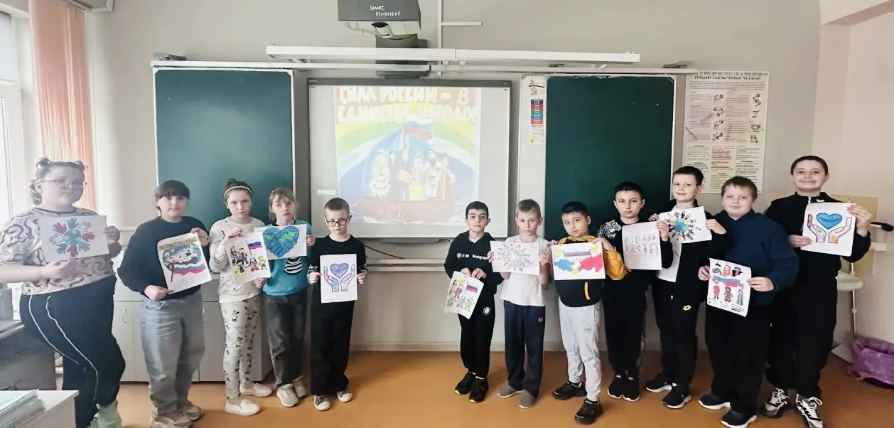 В лагере с дневным пребыванием детей «Умницы и умники» под руководством Набиевой С.С. в отряде 3Б класса прошёл тёплый и содержательный урок, посвящённый единству народов России. Вместе с учителем дети посмотрели видеоролик «Мы вместе, мы едины», в котором ярко и эмоционально показали, как разные народы — буряты, якуты, башкиры, узбеки, татары, чуваши и многие другие — живут в одной стране, сохраняя свои традиции, язык и культуру. Затем ребята обсудили, что Россия — не просто географическое понятие, а настоящая родина для сотен народов, объединённых общей историей, культурой и верой в будущее. Даже несмотря на различия во внешности, обычаях и языках, у всех у нас есть общее ! Мы — граждане Российской Федерации! Это стало ключевой мыслью беседы: единая страна, единая судьба, единое чувство патриотизма. После разговора дети активно включились в творческую работу. Каждый нарисовал свой образ Родины — кто-то изобразил многонациональный праздник, кто-то — символы единства, а кто-то — людей разных национальностей, держащихся за руки. Эти рисунки были собраны в яркую выставку, на которой каждый мог увидеть себя — не только как часть своей семьи, но и как часть огромной, дружной семьи — России. #ГодЕдинстваНародов