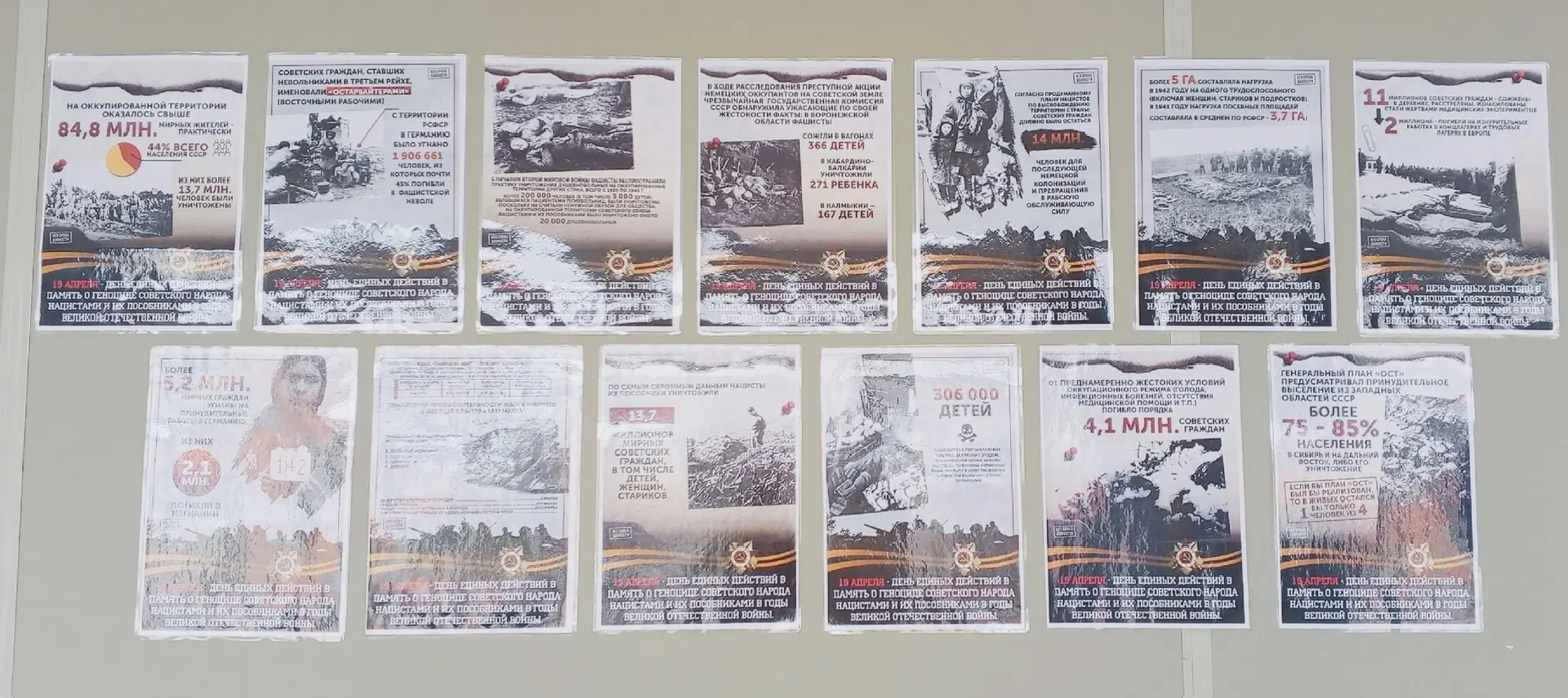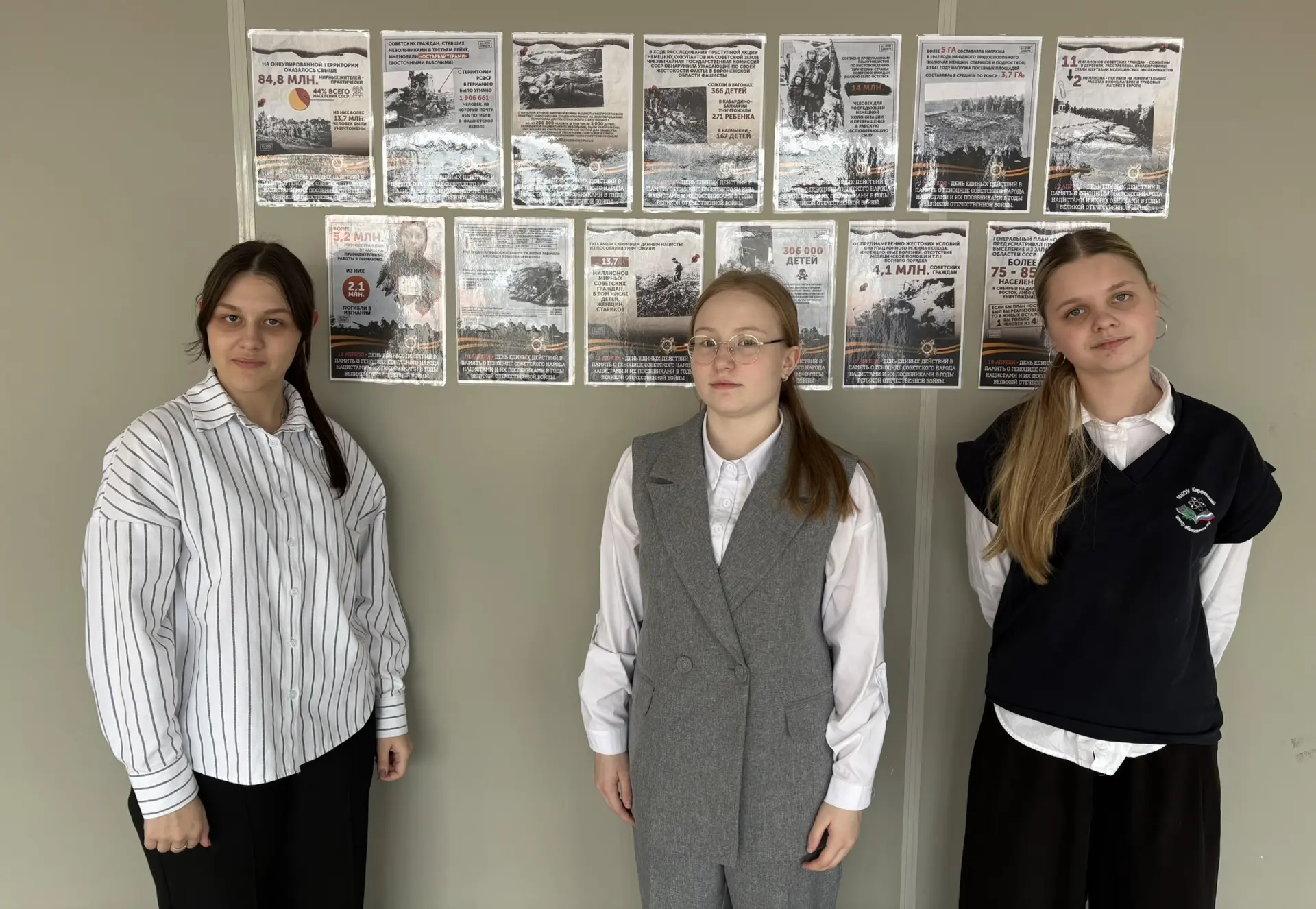 19 апреля в России отмечается траурная дата — День памяти жертв геноцида советского народа, совершенного нацистами и их пособниками в годы Великой Отечественной войны. Этот день стал символом памяти о невосполнимой утрате миллионов жизней, погибших в условиях фашистского террора. В рамках национального проекта «Молодежь и дети» волонтеры школьного отряда «Твори добро» подготовили информационный стенд, посвящённый этой трагической дате, в рамках всероссийского проекта «Без срока давности». Материал стенда рассказывает о масштабах преступлений нацистской Германии на оккупированных территориях СССР: о систематических расстрелах, избиениях, массовых депортациях, уничтожении семей, высылке народов, а также о трагедии военнопленных, которых фашисты считали «недочеловеками». Особое внимание уделено ужасам, учинённым в деревнях и городах, где нацисты уничтожали не только военных, но и мирных жителей — женщин, детей, стариков.