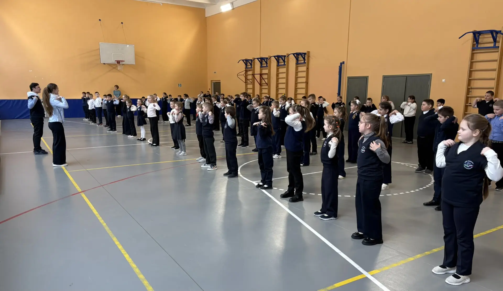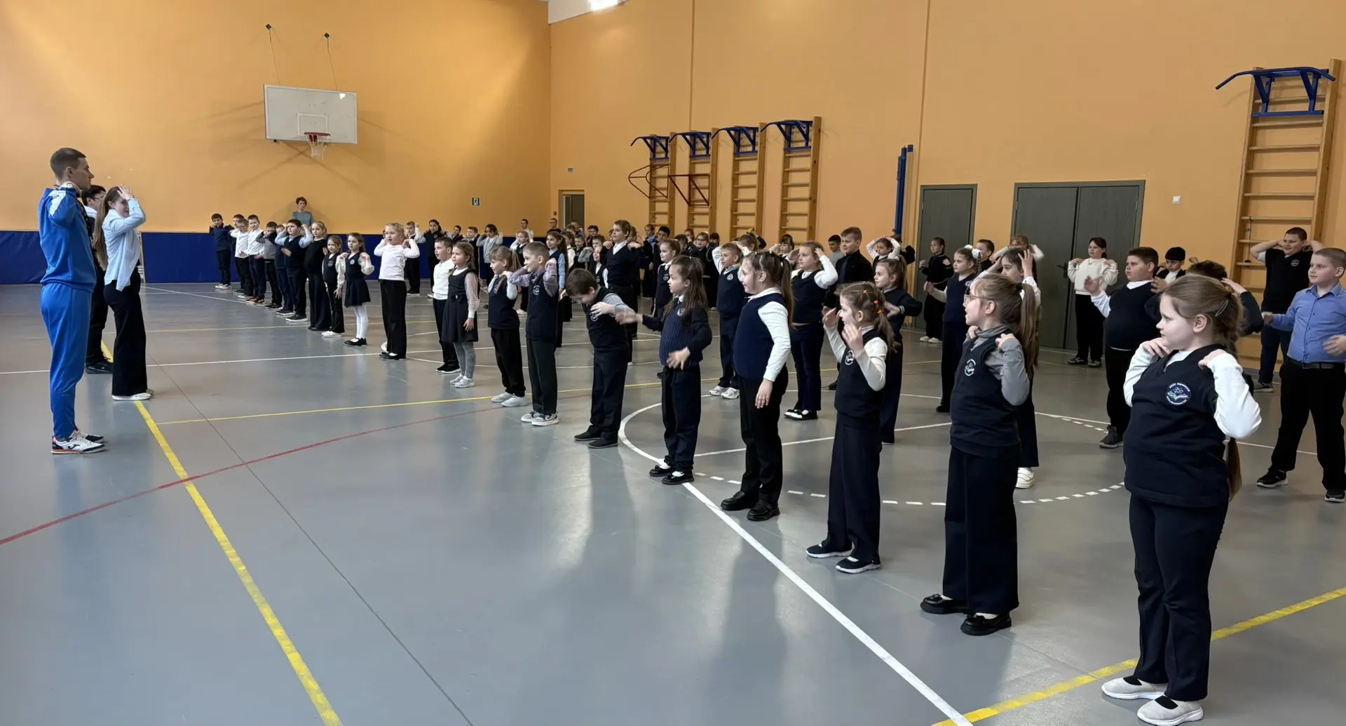 На этой неделе в нашей школе царит особая атмосфера – мы отмечаем Весеннюю неделю добра! Наши волонтеры из отряда "Твори добро" не могли остаться в стороне. Сегодня утром Алина и Азиз, полные сил и энергии, провели для учеников 1-2 классов утреннюю гимнастику! Под зажигательные и веселые звуки музыки малыши с удовольствием делали повороты, прыгали и приседали. Было видно, как им нравится двигаться и заряжаться энергией! И это неудивительно, ведь утренняя зарядка – это не просто набор упражнений. Это настоящий залог хорошего настроения на целый день! Когда ты начинаешь утро с движения и позитива, все дела спорятся, а улыбка не сходит с лица. Спасибо Алине и Азизу за такой замечательный старт дня! Вы показали нашим малышам, как важно заботиться о своем здоровье и настроении, как здорово творить добро, даря радость другим! #ВесенняяНеделяДобра #ВНД71 #Доброволец71