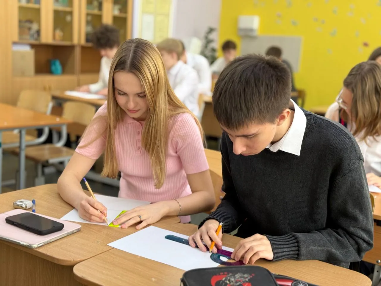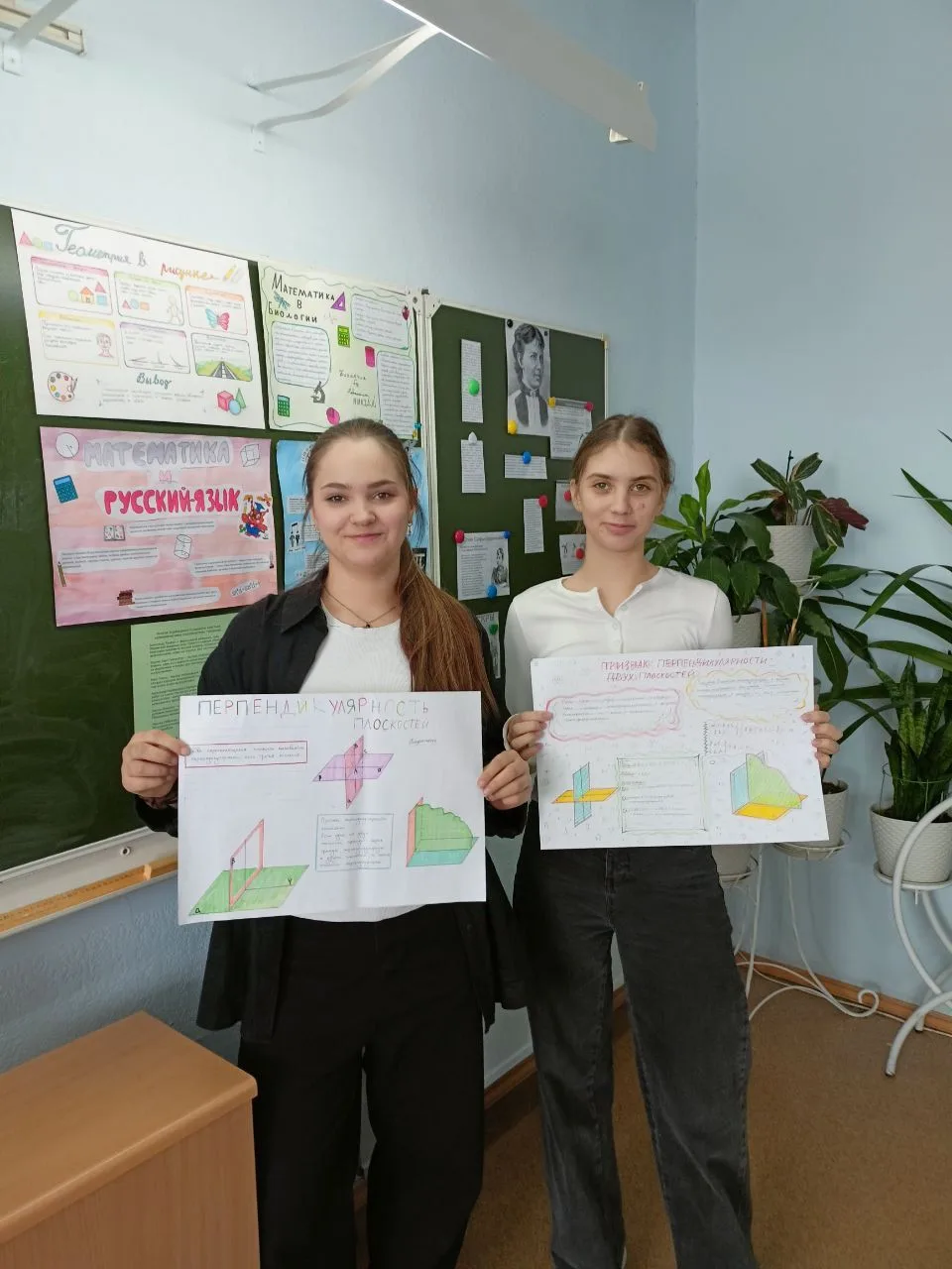 На уроке геометрии десятиклассники разрабатывали и защищали мини проекты по теме: Перпендикулярность плоскостей.