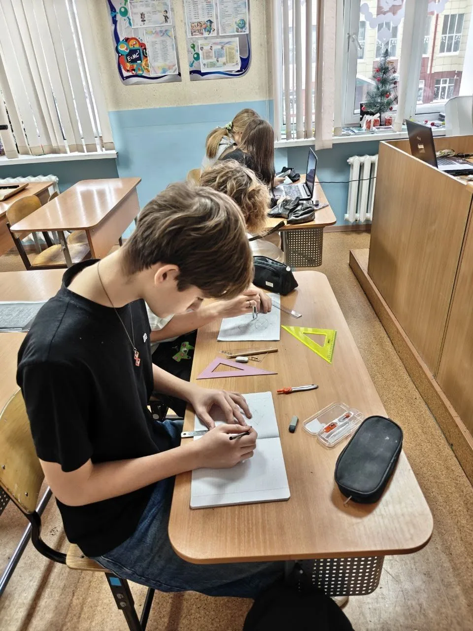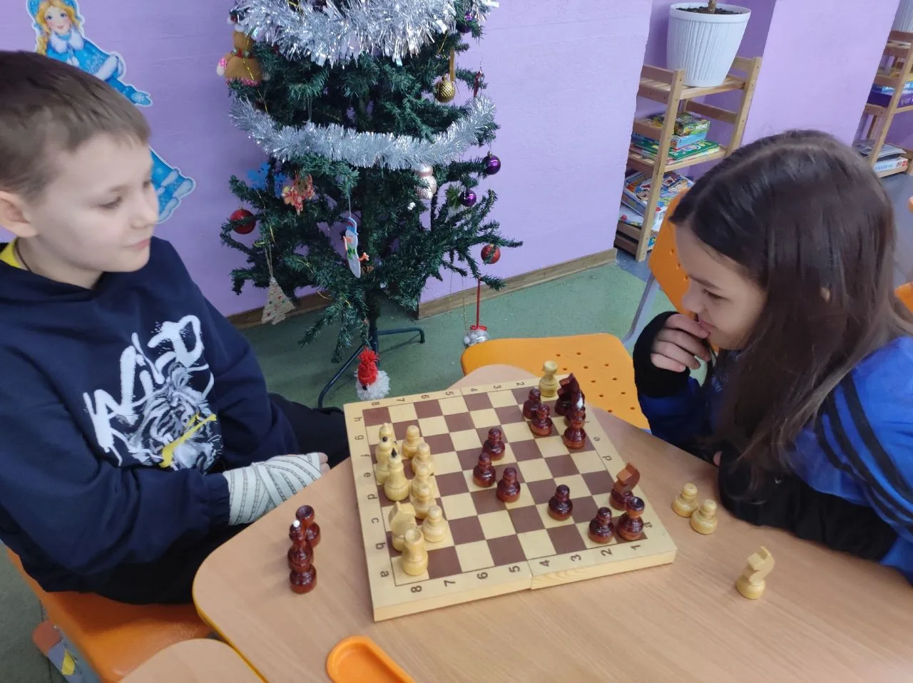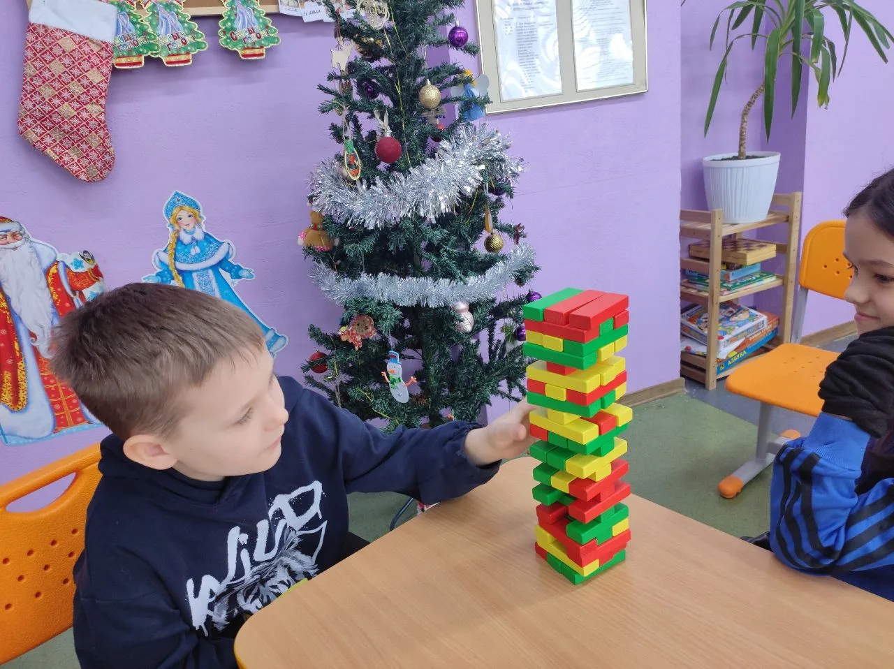 Гостиная Деда Мороза продолжает работу. Сегодня ребята решали задачки и головоломки от Деда Мороза, занимались чертежами и приняли участие в новогодней викторине.
