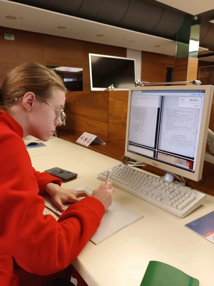 Для учеников 10 классов, реализующих индивидуальные проекты по истории и обществознанию, 14 февраля 2026 года было проведено занятие "Организация работы с фондами Тюменской областной библиотеки им. Д.И.Менделеева в рамках проектной деятельности". Ребята вместе с учителем истории Анной Ярославовной Тарасюк нашли уникальные публикации конца XIX и начала XX вв., которые будут включены в исследовательские проекты.