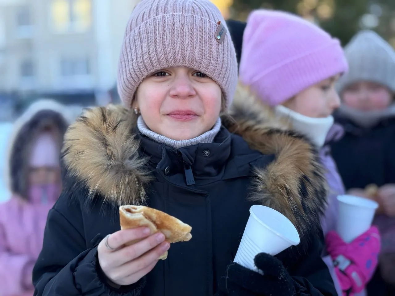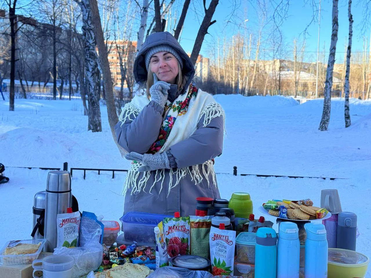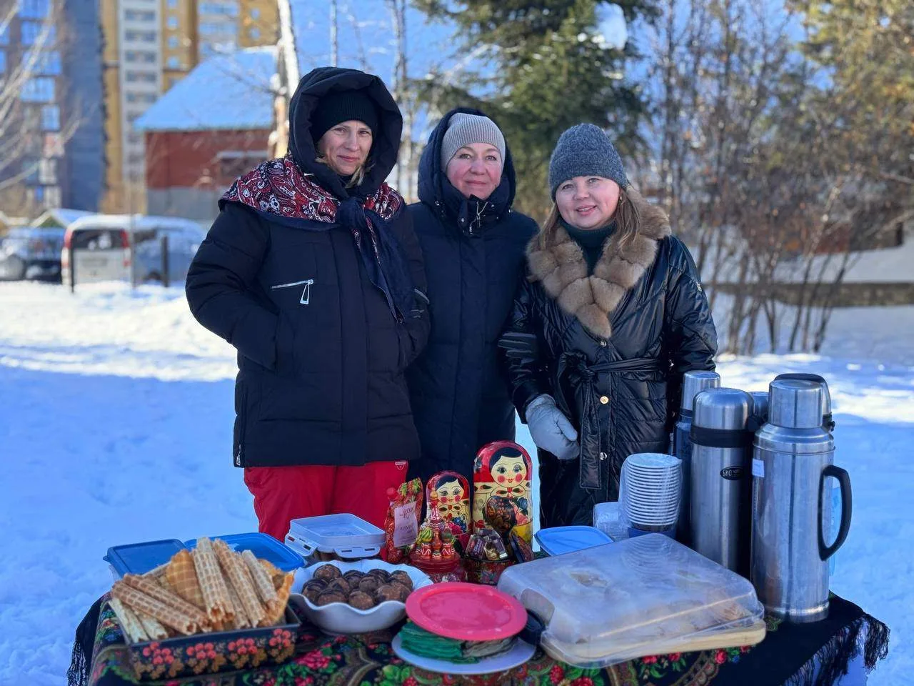 Но главным угощением, конечно же, стали блины — золотистые, румяные, с вареньем, сгущенкой и сметаной. Никто не ушел без угощения!