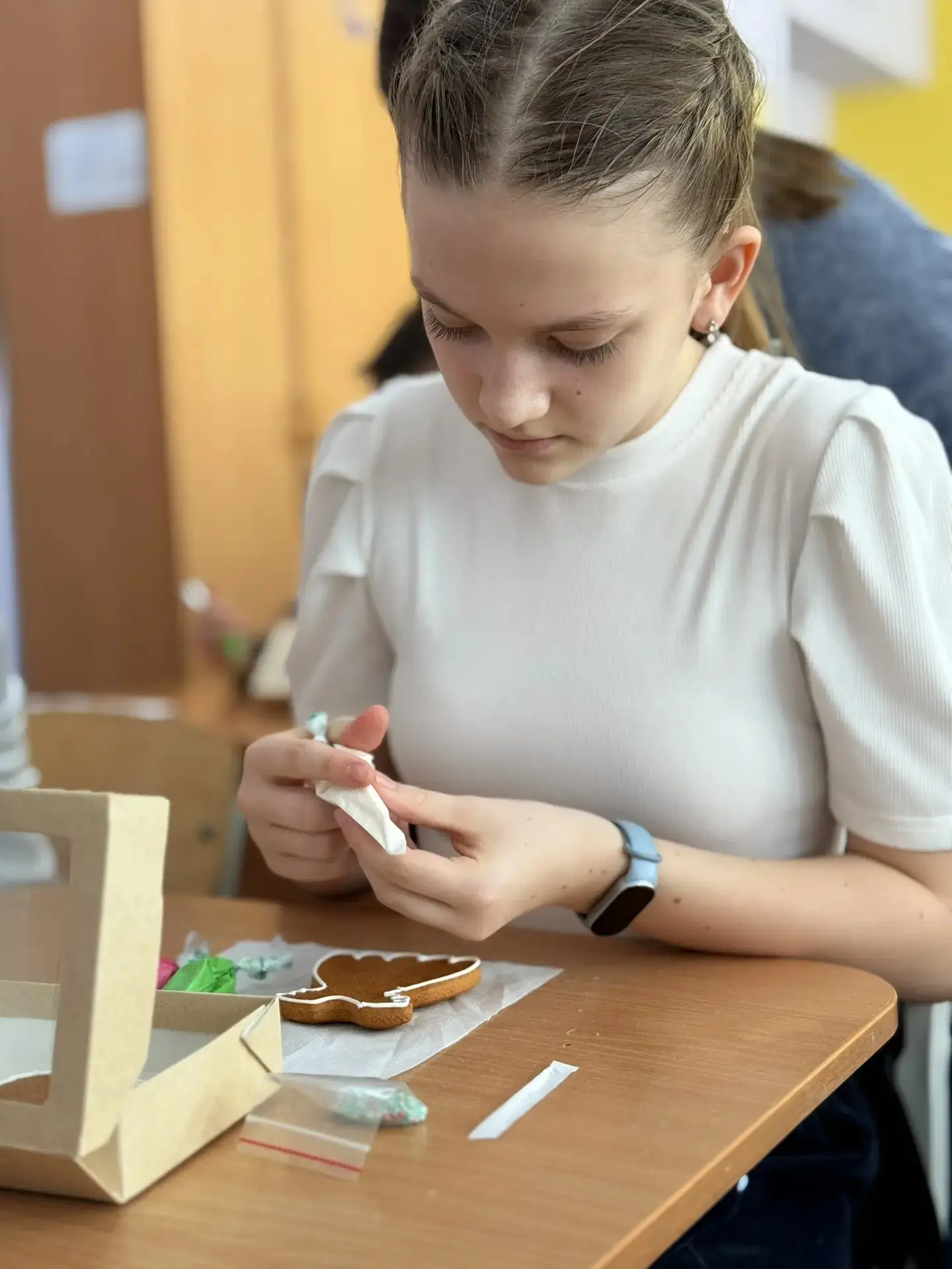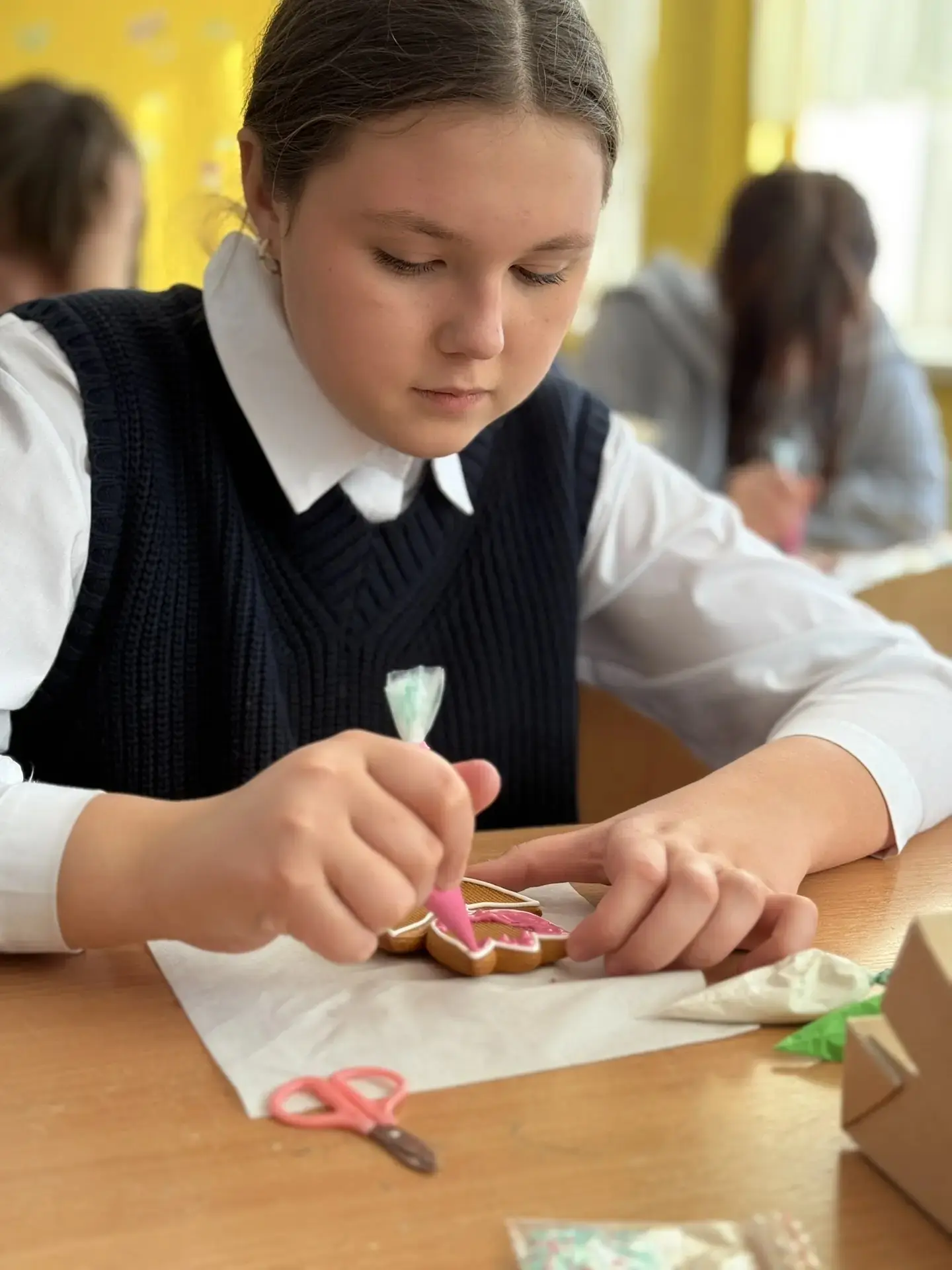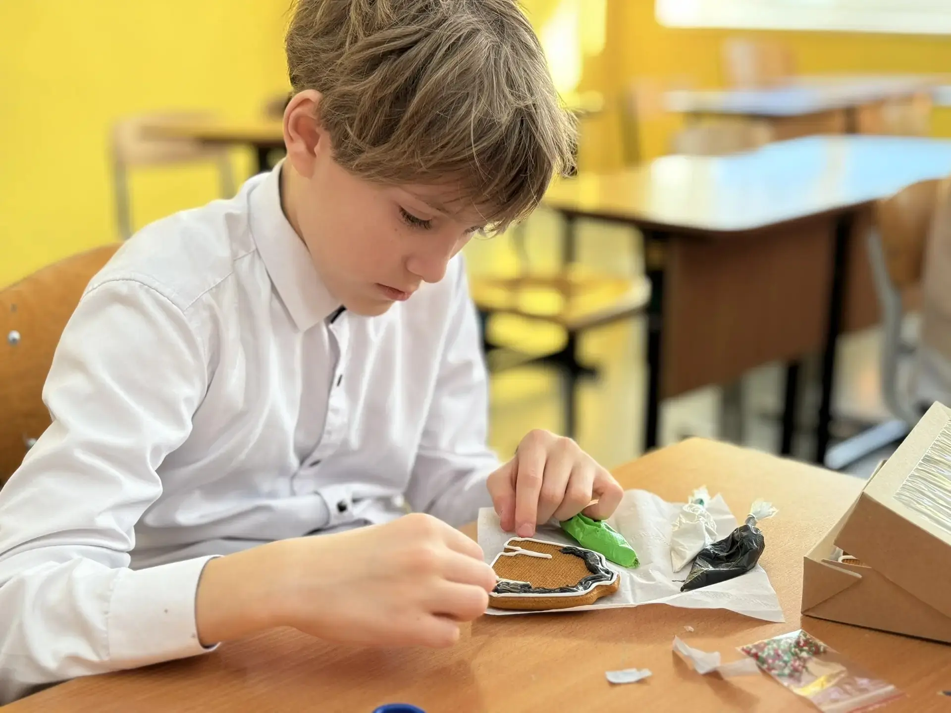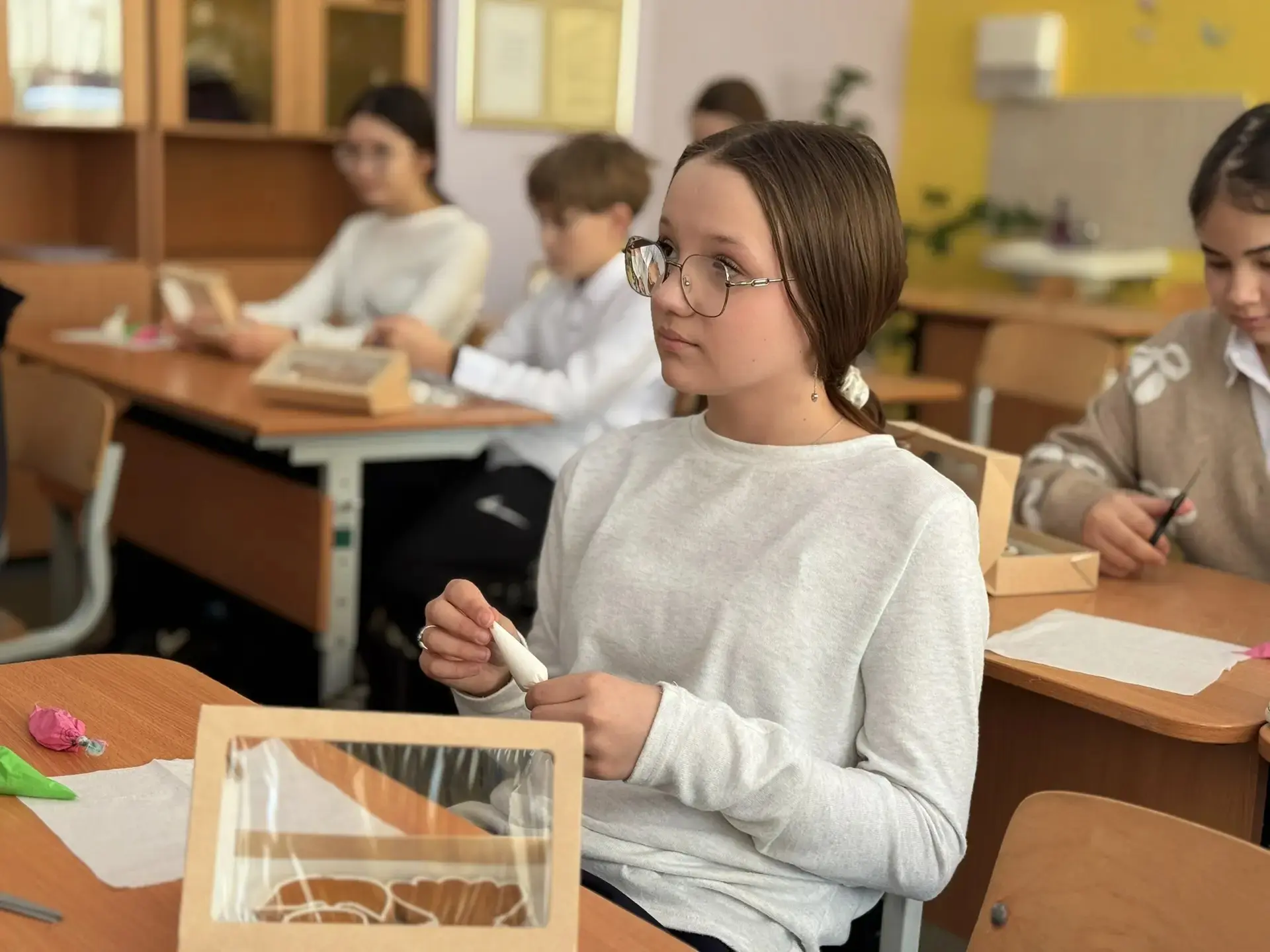 В воздухе витал аромат имбиря и корицы, а парты превратились в настоящие художественные мастерские. Под чутким руководством мастериц Гильдии наши шестиклассники учились работать с глазурью, подбирать цвета и создавать свои маленькие шедевры.