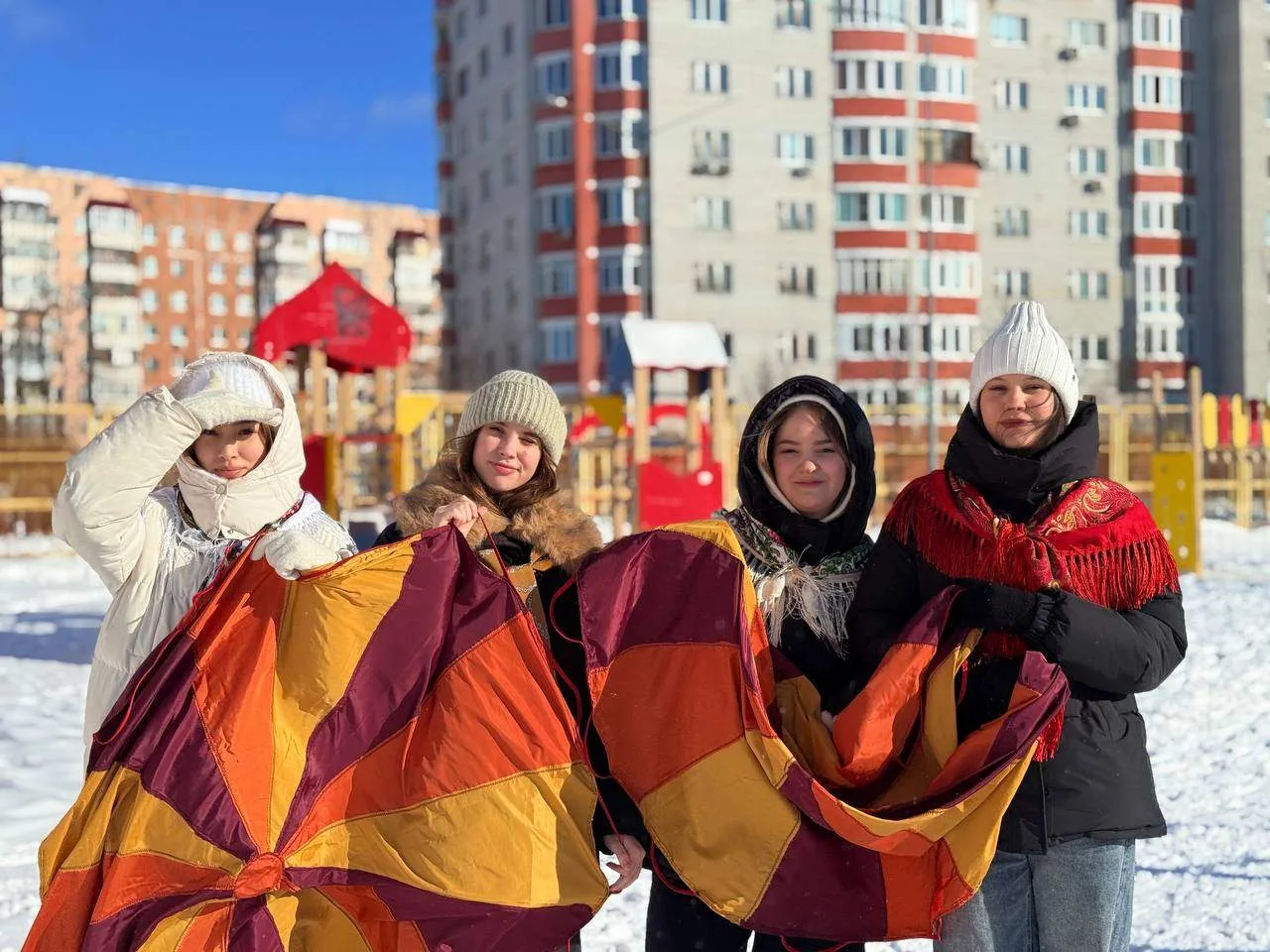 Свежий воздух, настоящие сугробы и дружная атмосфера — что еще нужно для идеальных проводов Масленицы? Ребята приняли участие в традиционных зимних забавах: перетягивали канат, мерялись силой в хоккее на валенках и водили хороводы вокруг огромного чучела.