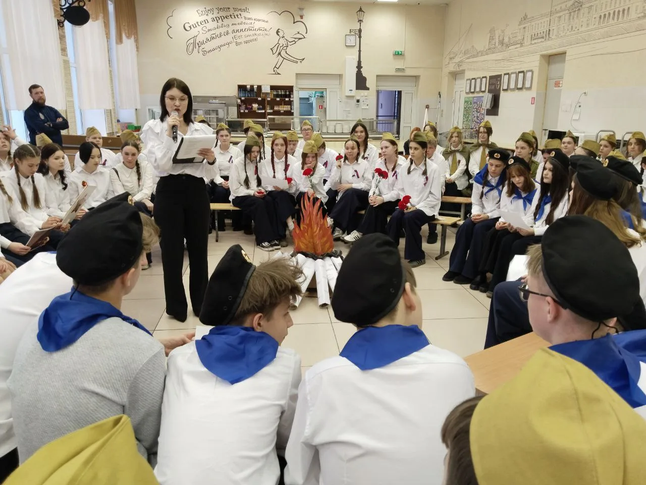 Вечер пятницы в гимназии прошёл в атмосфере тепла и искренности. У импровизированного костра собрались учащиеся 8 классов вместе с педагогами, чтобы принять участие в традиционном конкурсе патриотической песни. Это событие стало настоящим погружением в историю и культуру, объединяющим поколения.