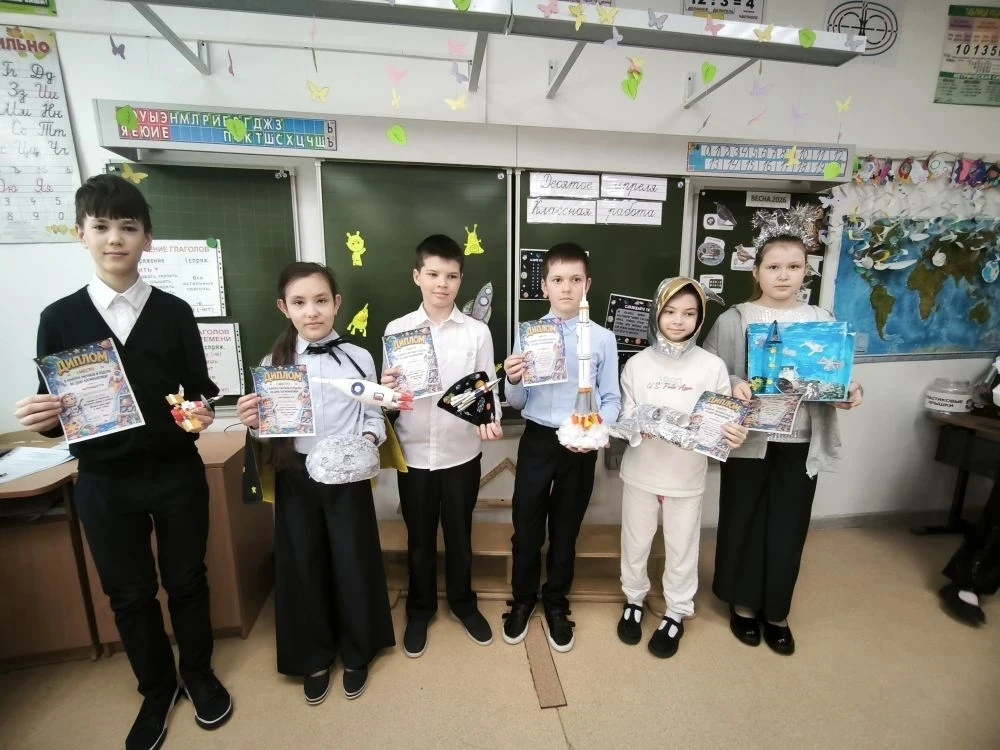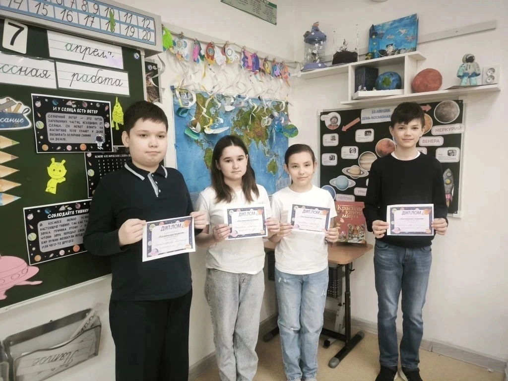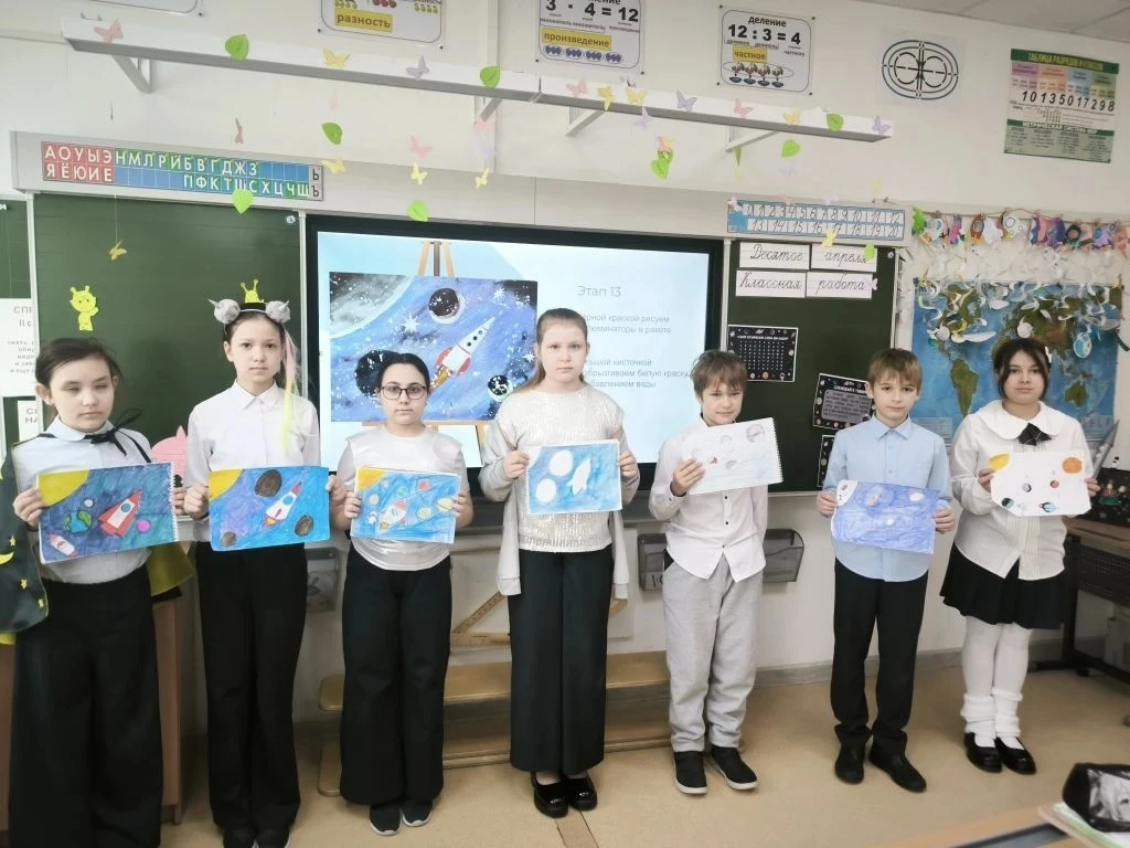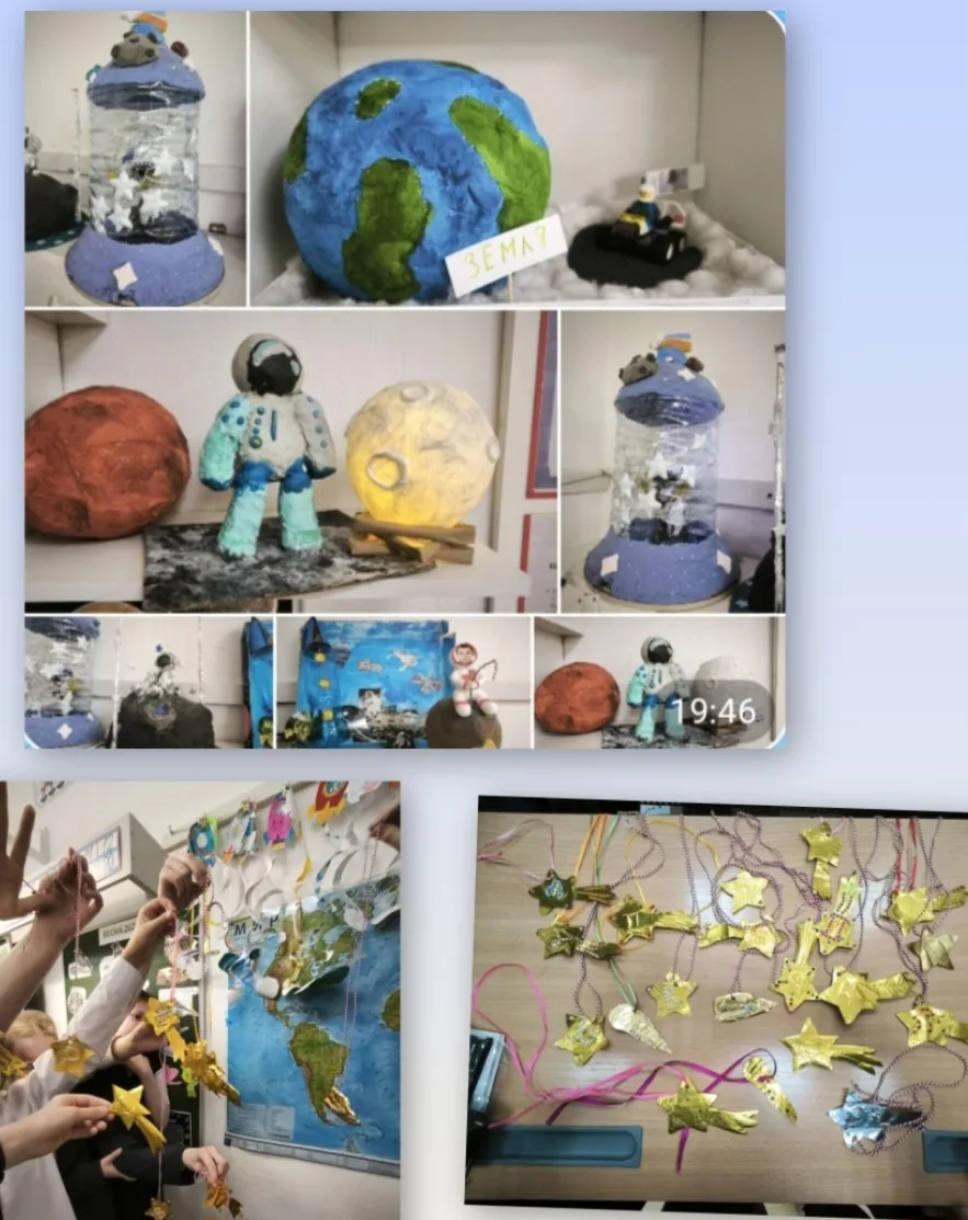 6 апреля в 4Б классе началась неделя Космонавтики. Ребята принесли необыкновенные поделки, посвященные космосу, а на уроке русского языка прошел "Космический диктант". Во вторник Светлана Михайловна оформила для ребят уголок "Интересные факты о космосе". В среду у детей состоялся "Математический космический диктант", а в четверг - "Космическое списывание" по русскому языку. Победители конкурсов награждены памятными дипломами. На уроке технологии ребята изготовили космические талисманы со своими знаками зодиака. А в завершении недели дети подобрали себе фантастические образы и нарисовали космос. Неделя пронеслась молниеносно! Благодарим нашего учителя за такую насыщенную и увлекательную программу!