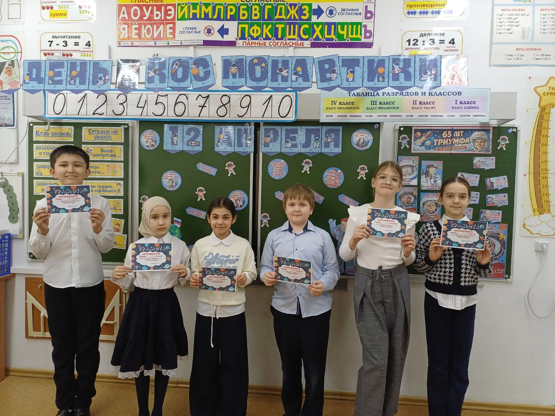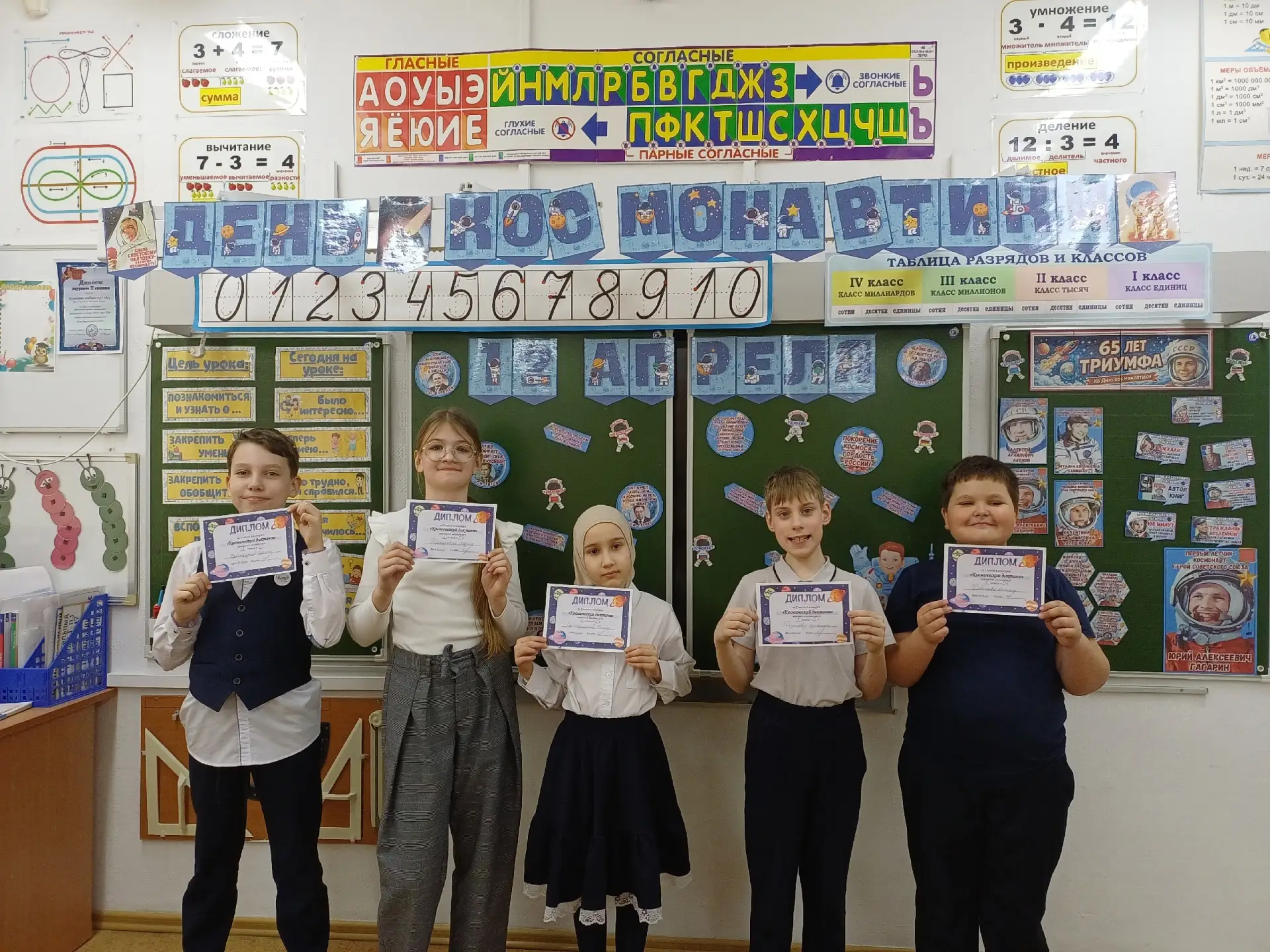 Освоение космоса стало одной из главных целей науки XX века, а 12 апреля 1961 года эта мечта впервые стала реальностью. В этот день советский корабль «Восток» с Юрием Гагариным на борту вышел на орбиту Земли, открыв новую страницу в истории человечества. Полет длился 108 минут: за это время корабль совершил один виток вокруг планеты, а сам Ю. Гагарин навсегда вошел в мировую историю как первый человек в космосе. Посадка прошла в Саратовской области, недалеко от деревни Смеловка. Ученики 5в класса 9 апреля приняли участие в Космическом диктанте, посвященном к 65-летию первого полета человека в космос. Было интересно узнать, сколько правильных ответов записано на листочке. А потом ребята отвечали на эти интересные вопросы перед классом и сравнивали, кто является знатоком этой темы.