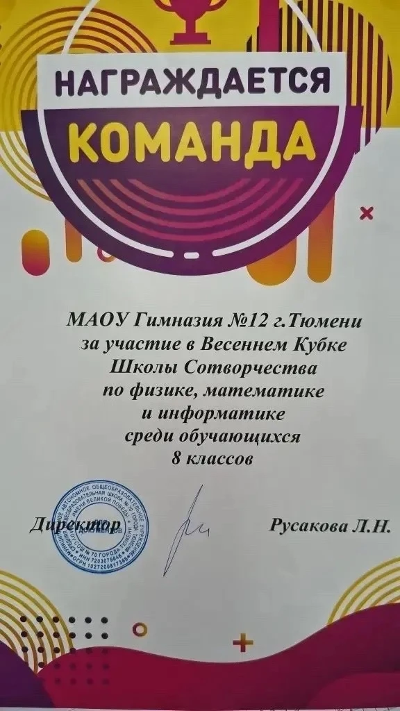 15.04.26 ребята профильного технологического 8Т класса приняли участие в межшкольном конкурсе" Весенний Кубок Школы Сотворчества по физике, математике и информатике " среди 9 команд восьмиклассников города. Ребята решали олимпиадные задачи за 15 минут по математике, физике и информатике. Интеллектуальные соревнованиях очень близки по духу этим ребятам, вызвали позитивное настроение и креативное мышление.Гордимся 8Т классом, желаем дальнейших побед!!!!