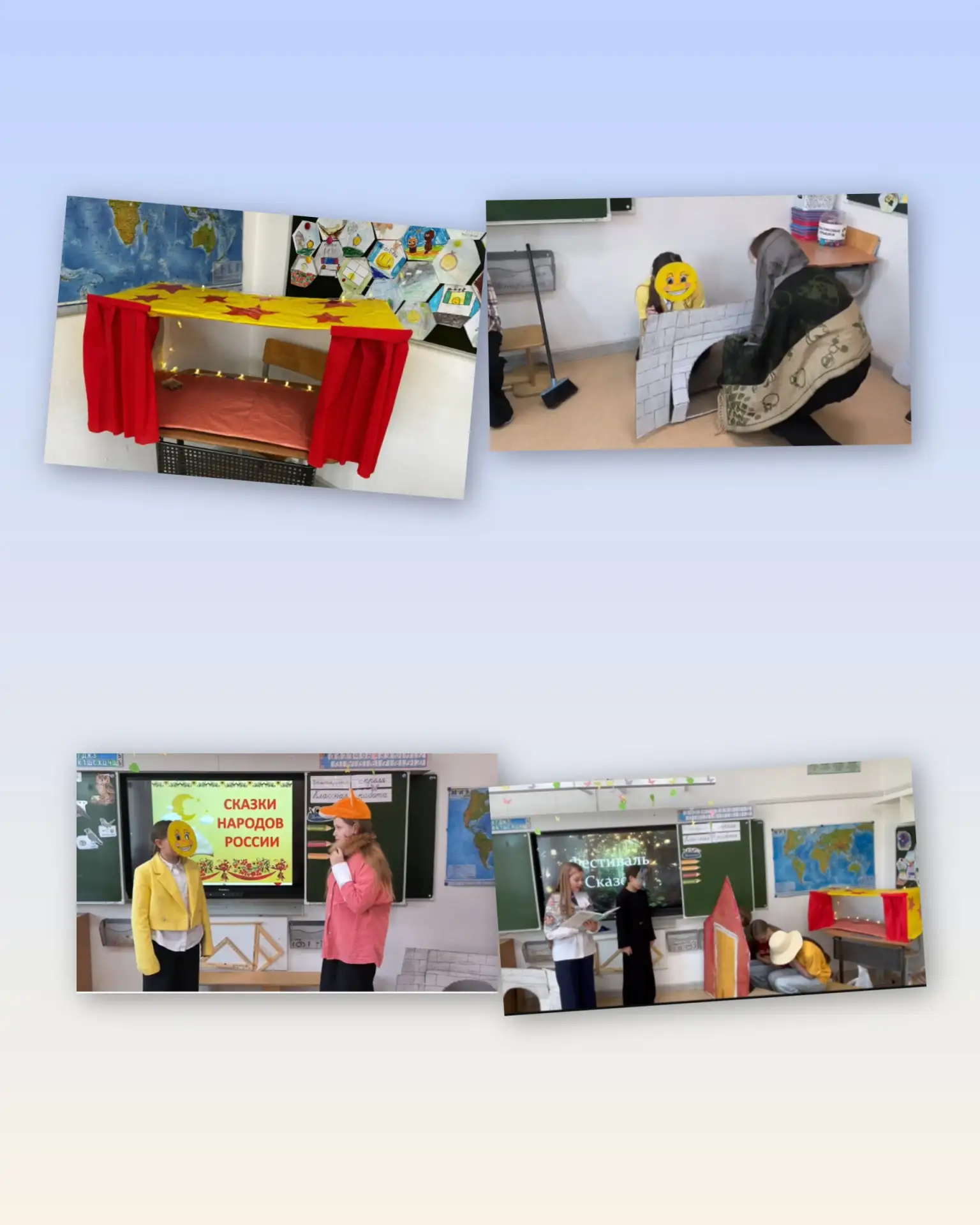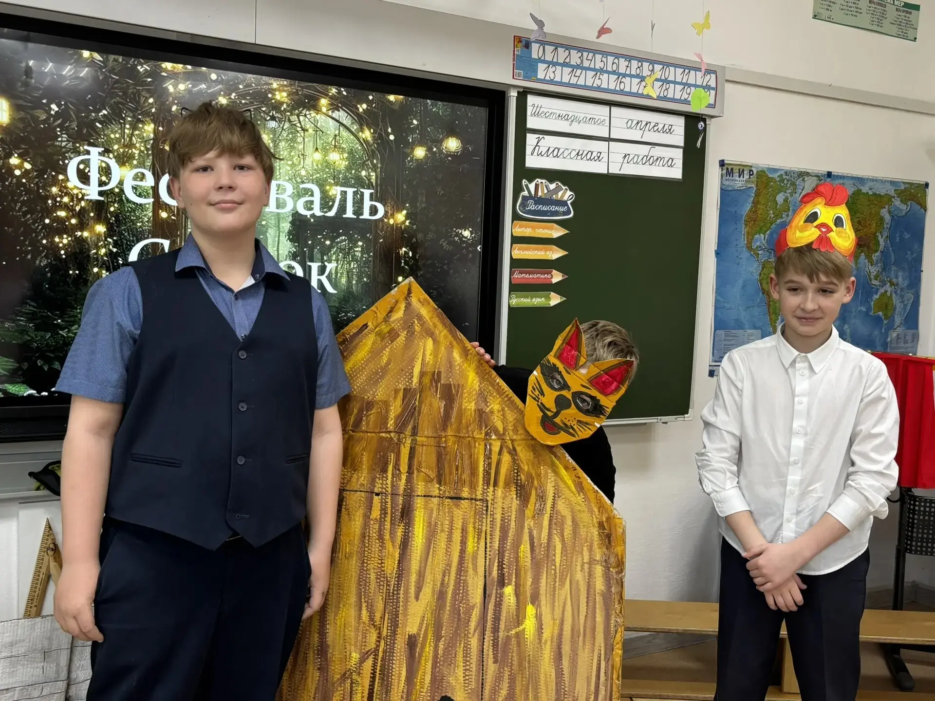 С радостью сообщаем, что наш 4а класс с большим энтузиазмом подошёл к подготовке к фестивалю сказок! Ребята проявили невероятное творчество: они сами изготовили костюмы и декорации, что сделало наше выступление ещё более ярким и запоминающимся.