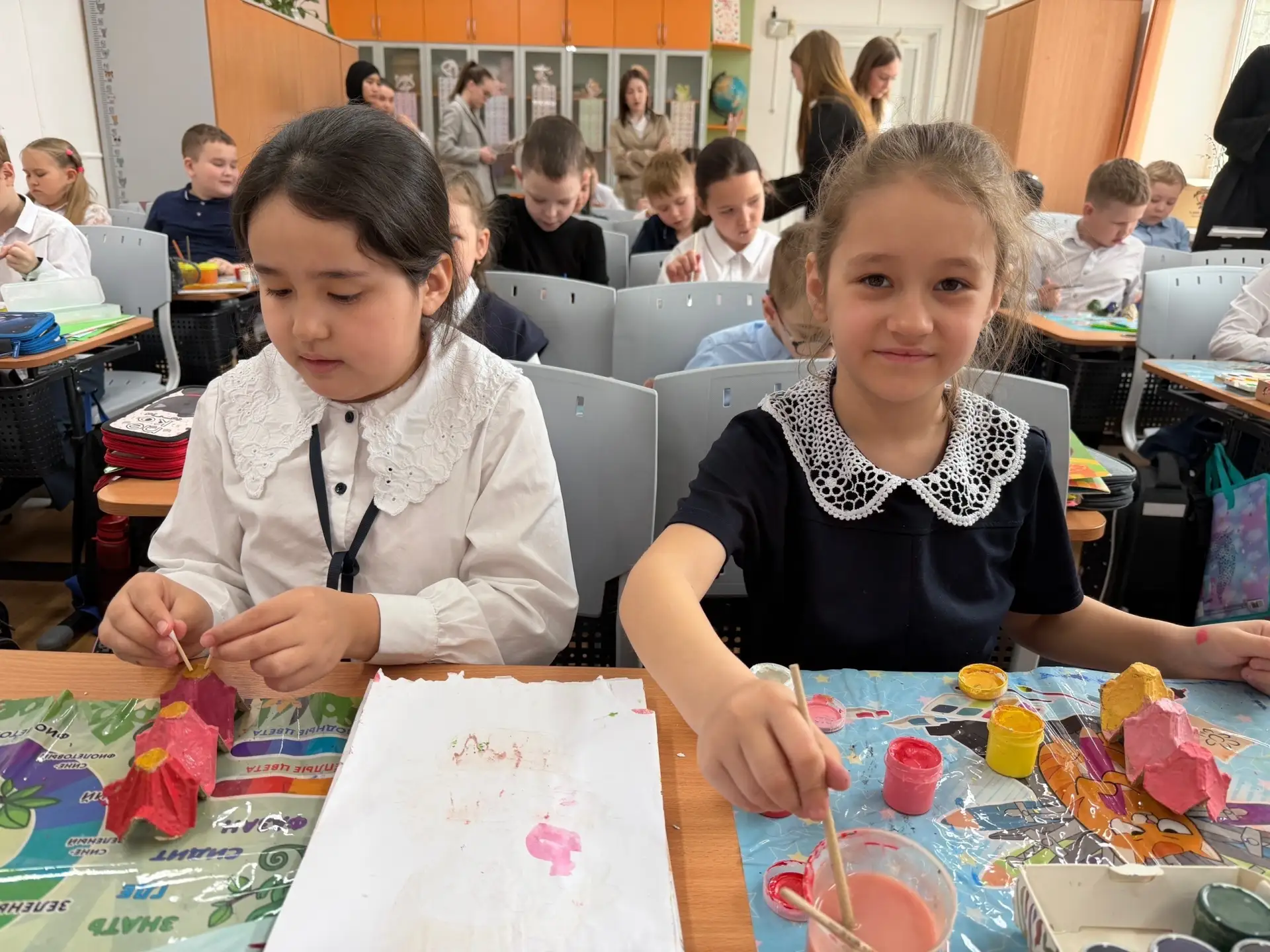 И именно в этот день, к ученикам 2 «Д» класса, приходили студенты педагогического колледжа, и провели мастер-класс у ребят по использованию вторичного сырья.