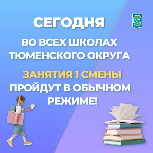 Доброе утро! Сегодня, 24.12.2025, во всех школах Тюменского муниципального округа занятия 1 смены пройдут в обычном режиме.