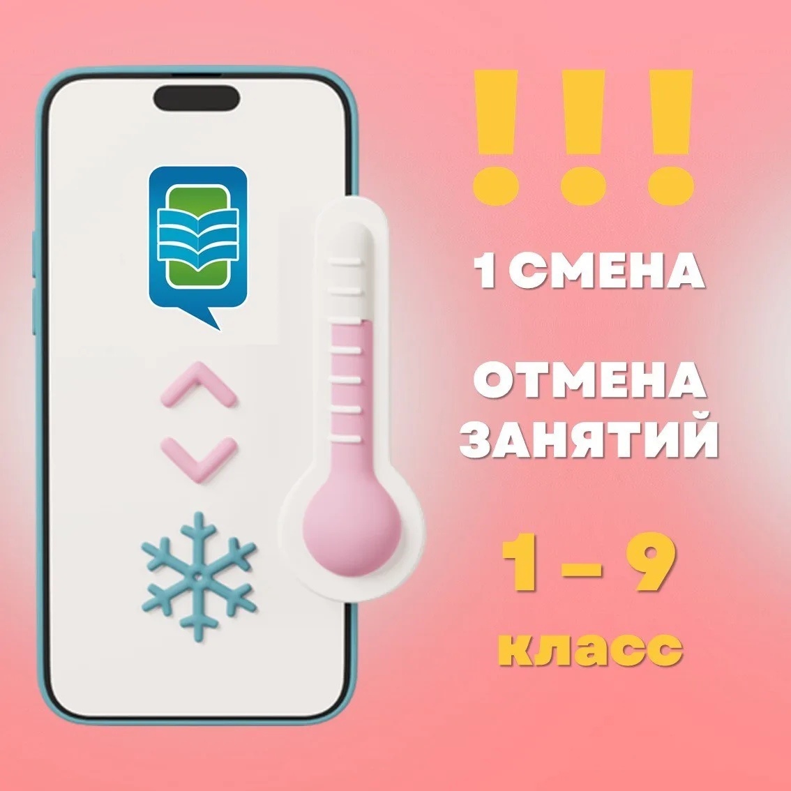 Доброе утро! Сегодня, 13.01.2026, во всех школах Тюменского муниципального округа занятия 1 смены для учеников 1-4 классов отменяются.