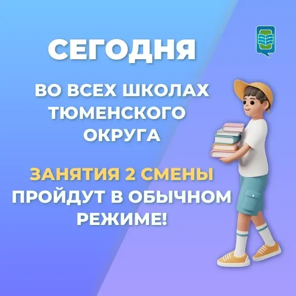 Сегодня, 16.01.2026, во всех школах Тюменского муниципального округа занятия второй смены пройдут в обычном режиме.