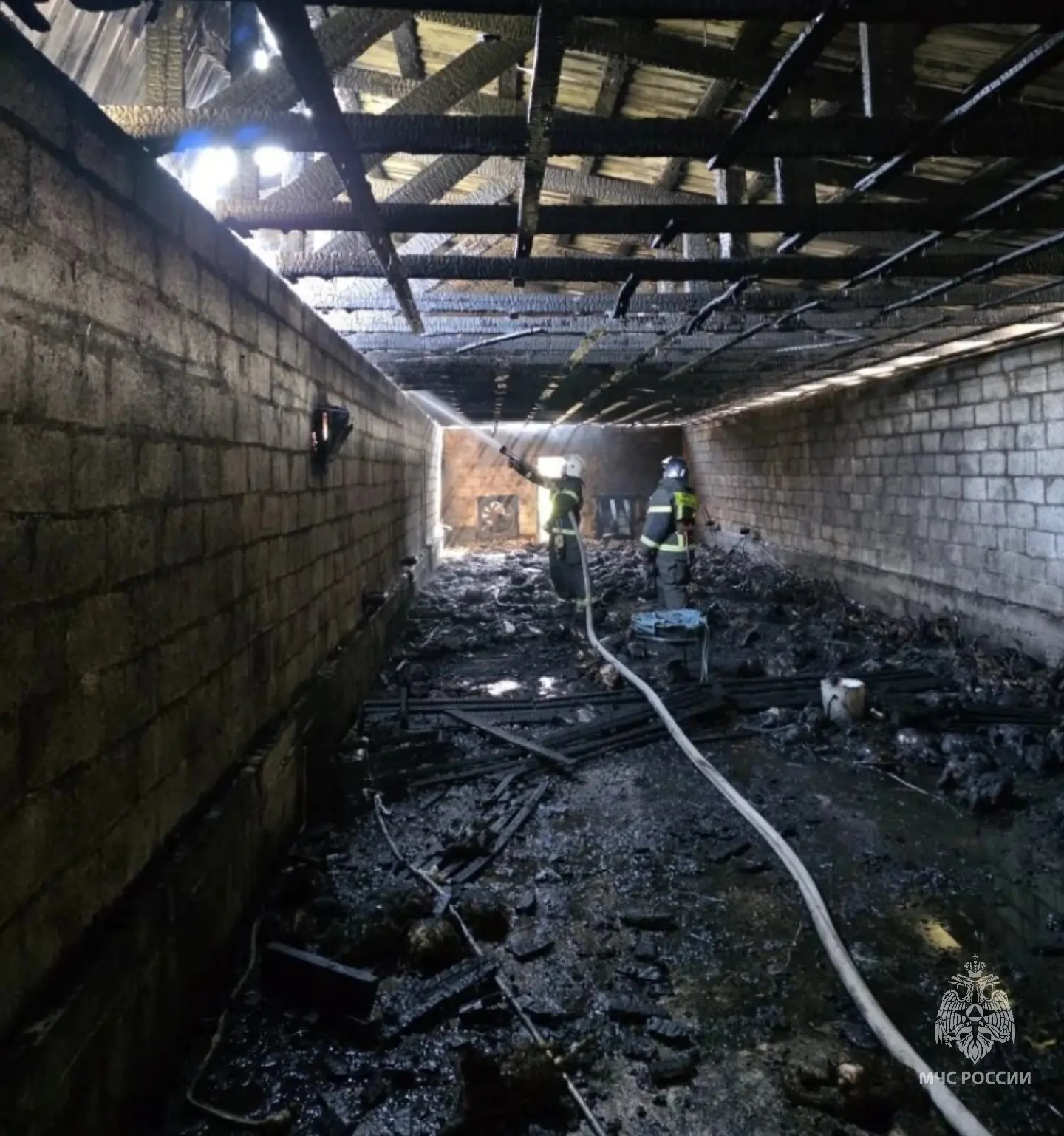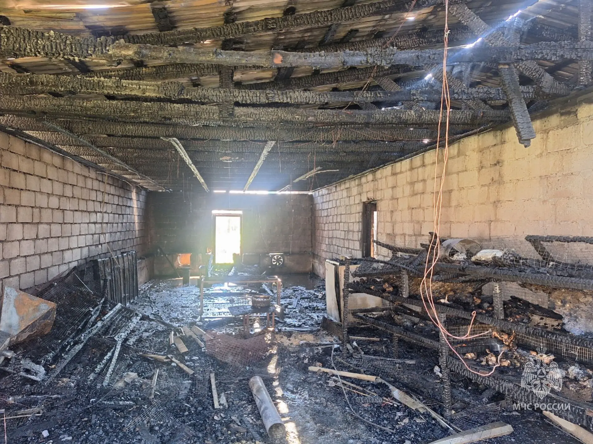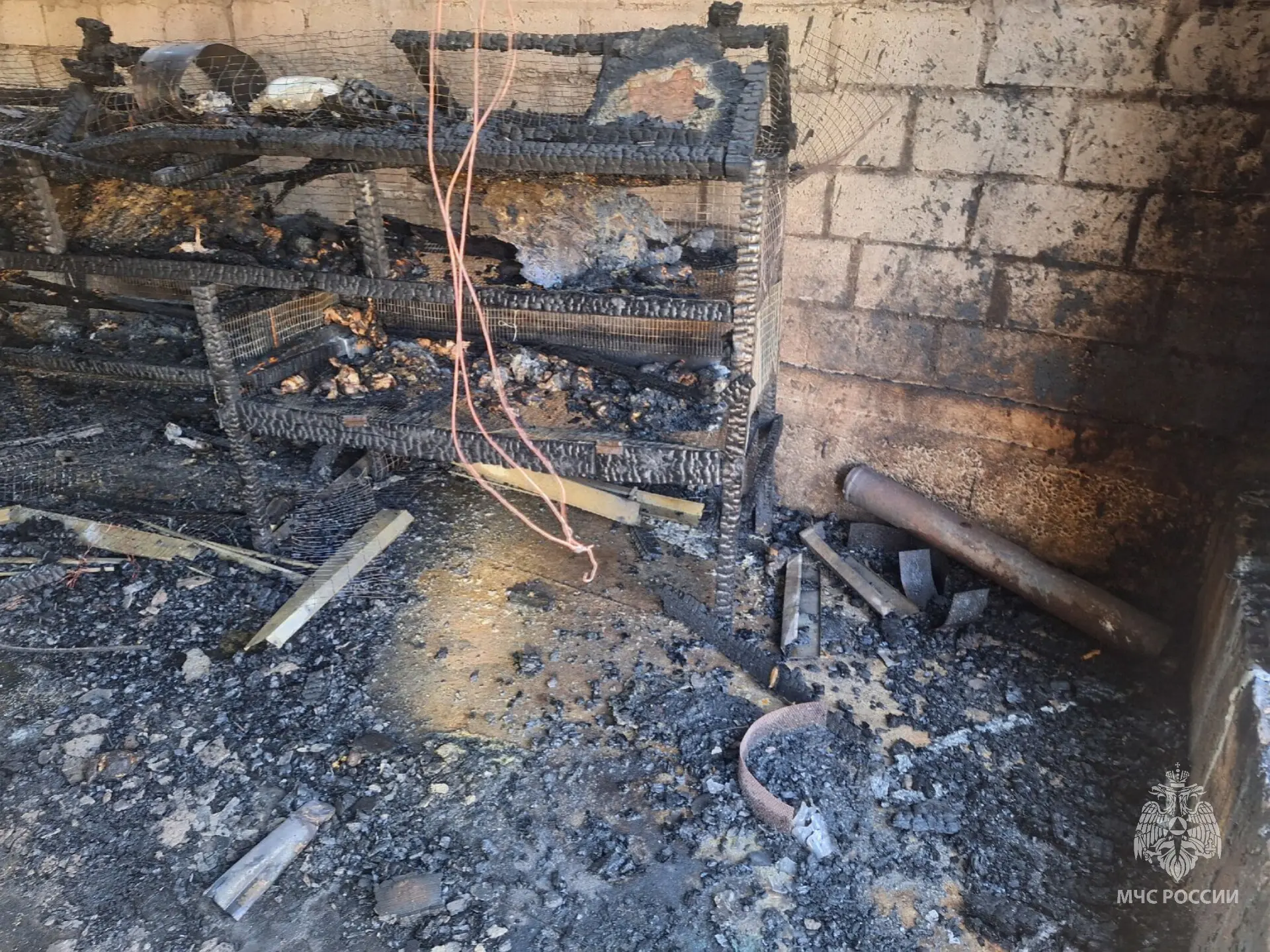 🔹в г. Прохладный, ул.Головко, сгорела кровля хозпостройки на территории частного домовладения на площади 80 м².