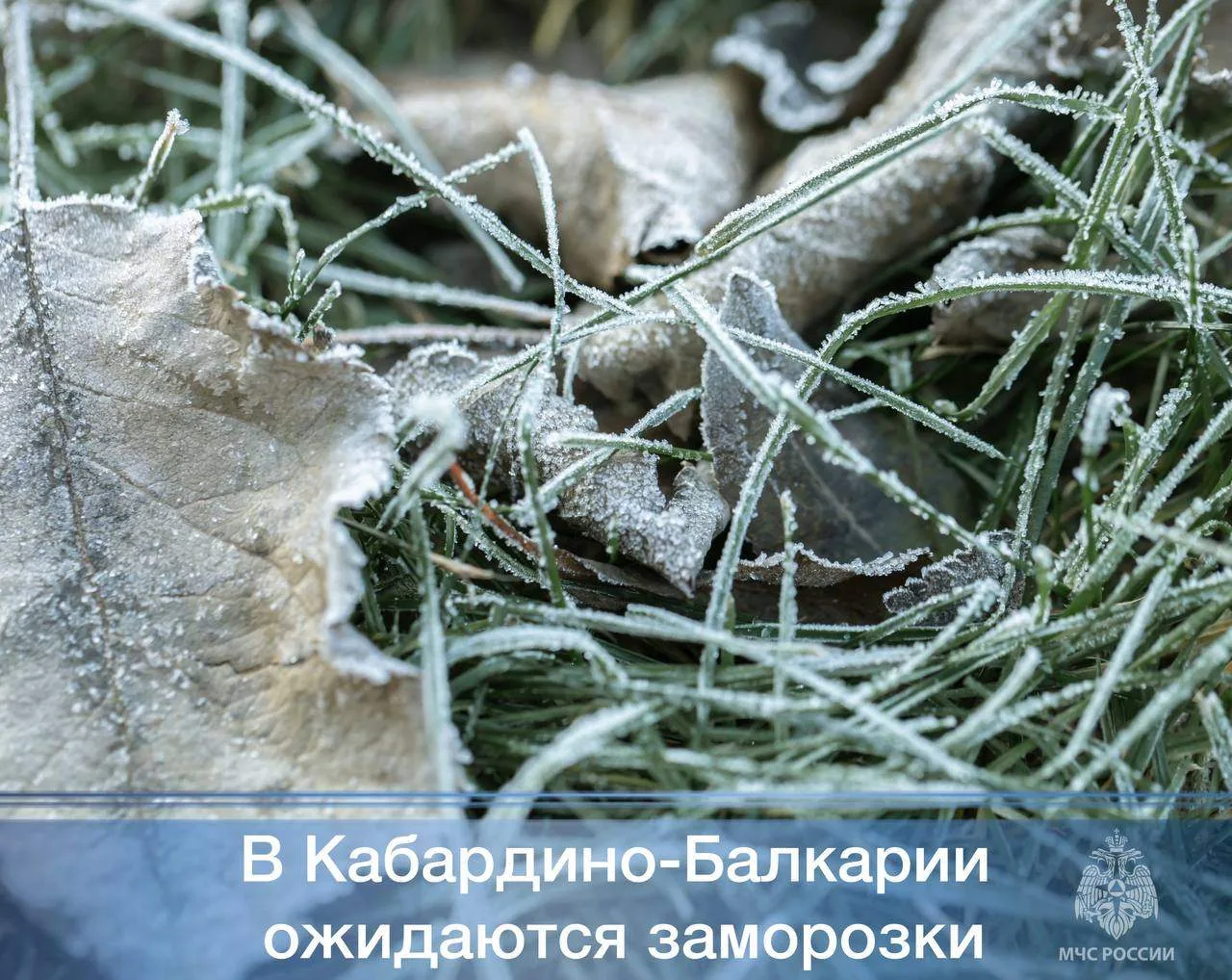 По данным Гидрометцентра, в утренние часы 9 –10 апреля на территории КБР местами ожидаются заморозки −1…−3 °C.
