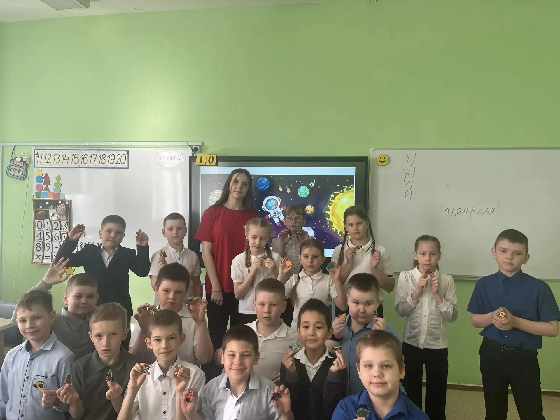 В преддверии этого знаменательного дня для первоклассников Истошинской СОШ прошёл увлекательный мастер‑класс «Космический талисман»!