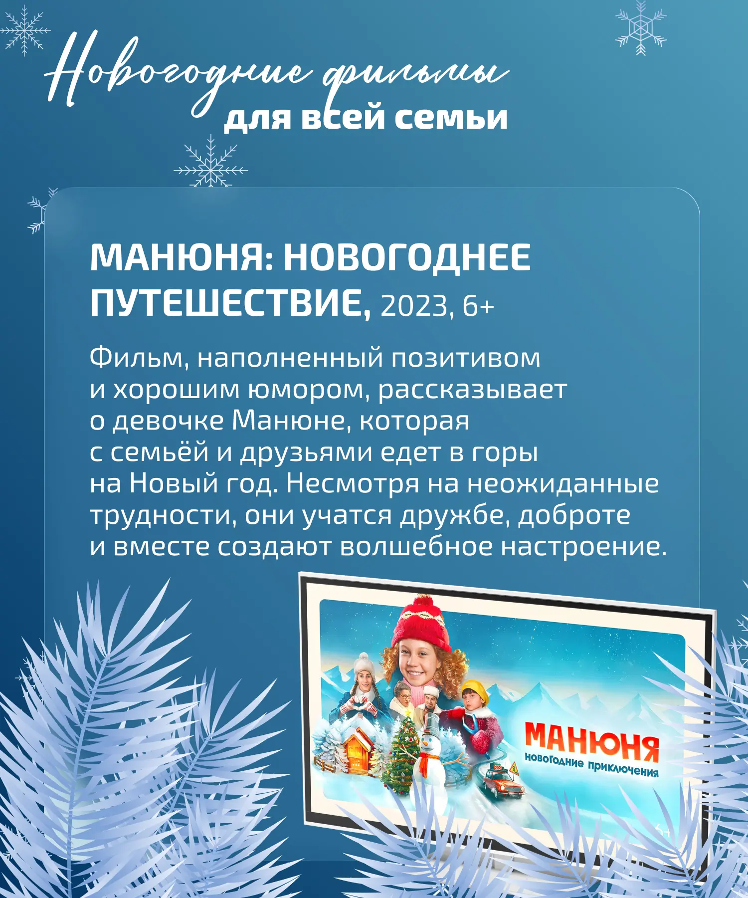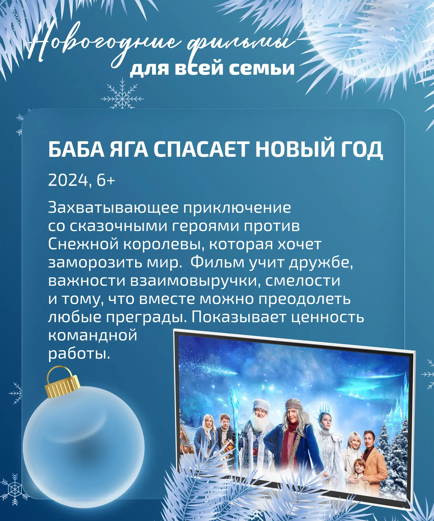 🎬 Новогодние фильмы — особая магия! Они не только создают праздничное настроение, но и дарят тёплые моменты для всей семьи, объединяя поколения вокруг важных ценностей: доброты, доверия, взаимопомощи и веры в чудо.