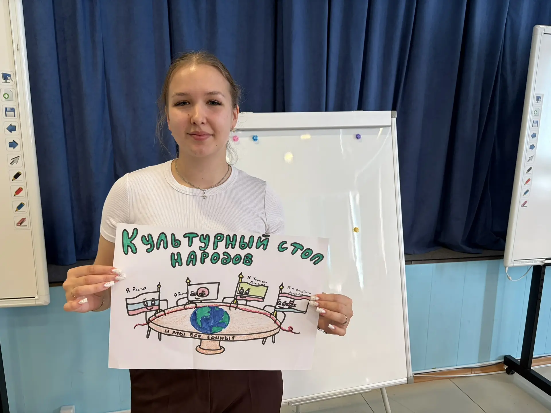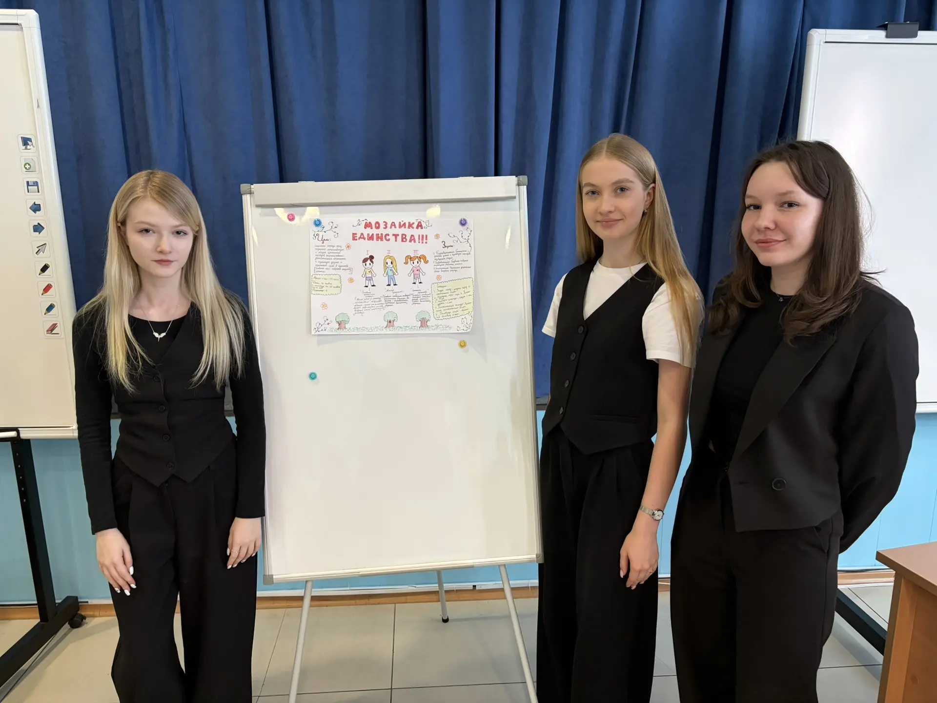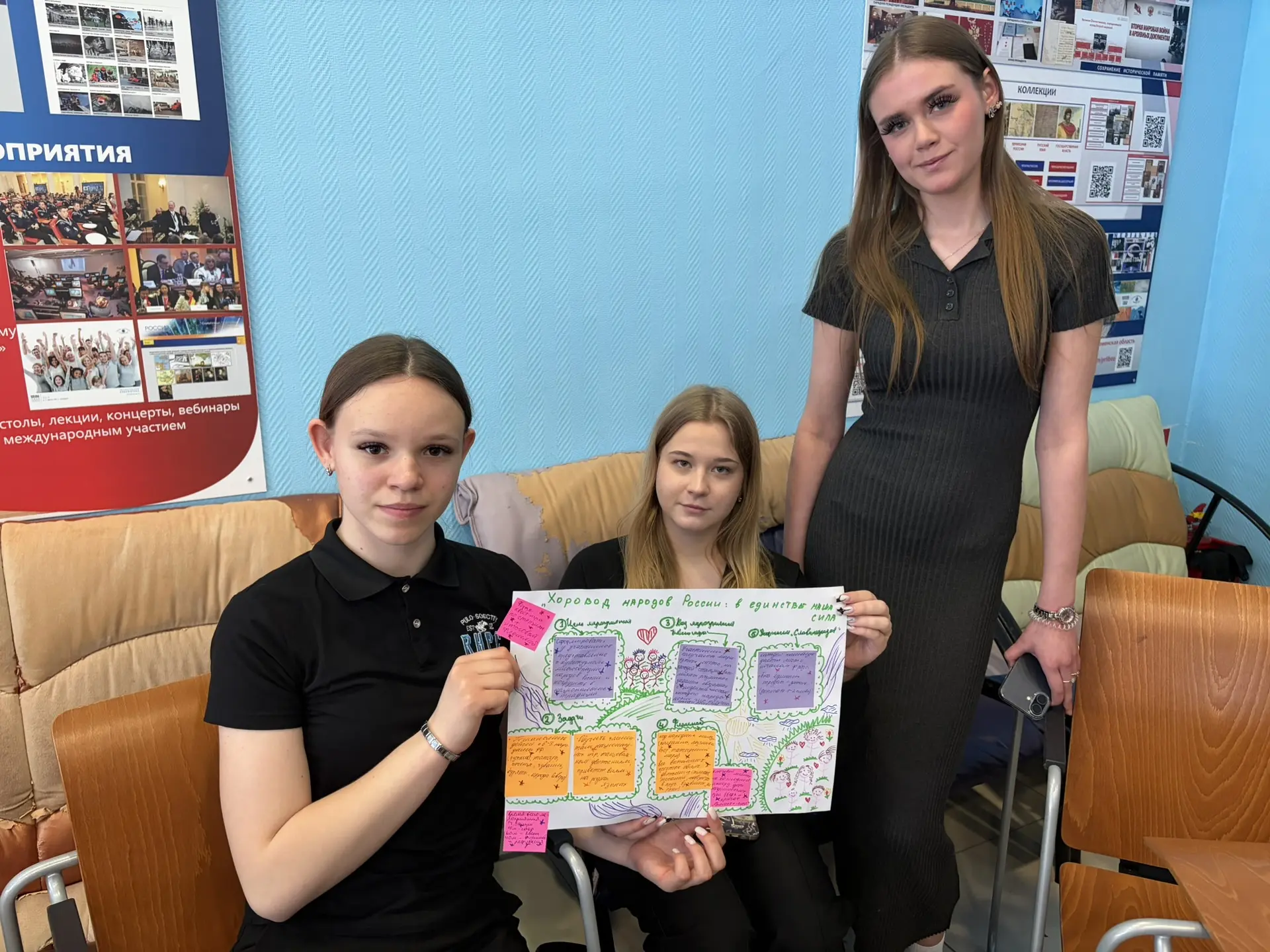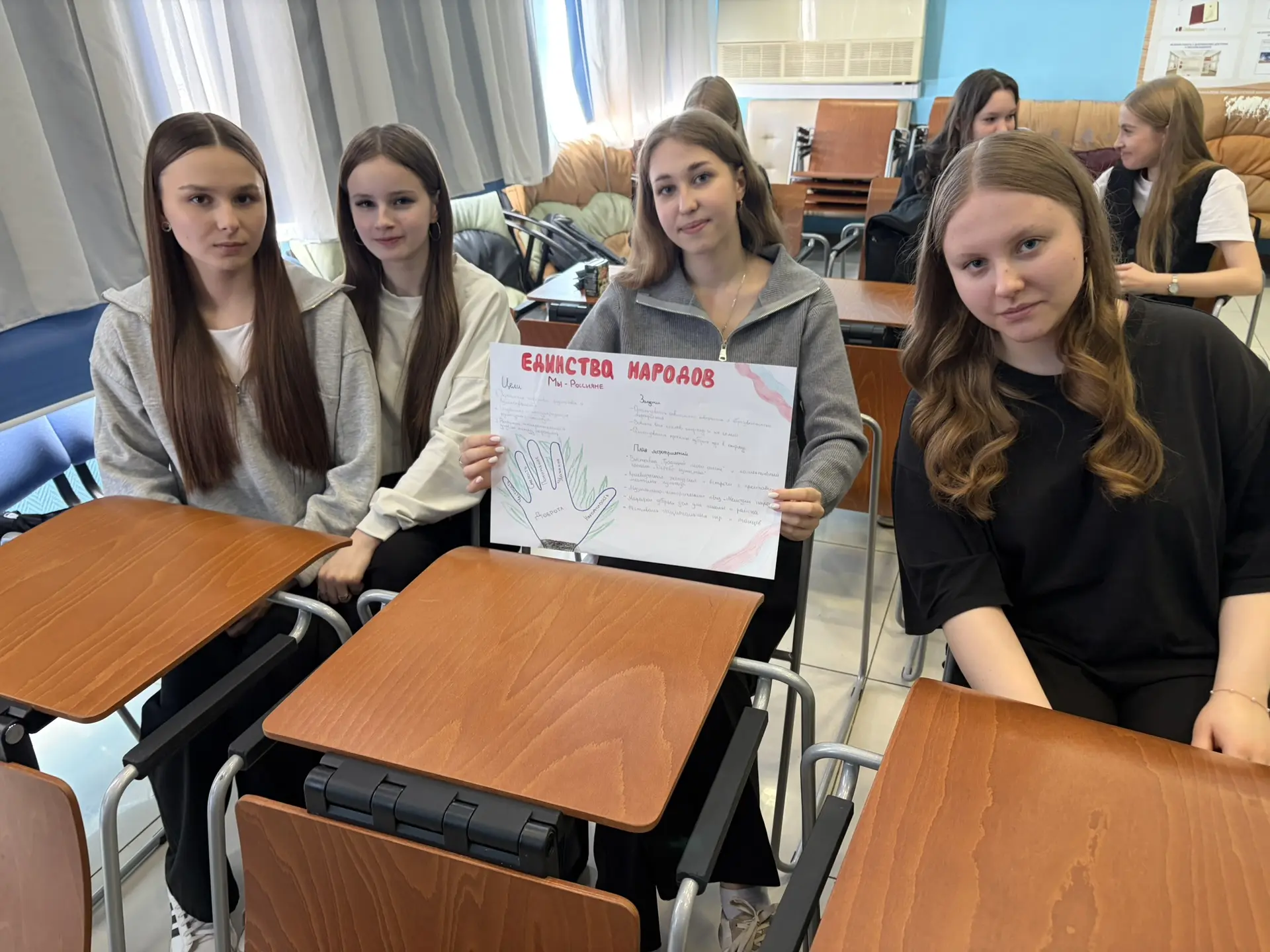 Теоретическая часть экзамена состояла из тестирования и устного решения кейсовых ситуаций. В рамках практической части ребята разрабатывали общеотрядные события, посвященные Году единства народов России.