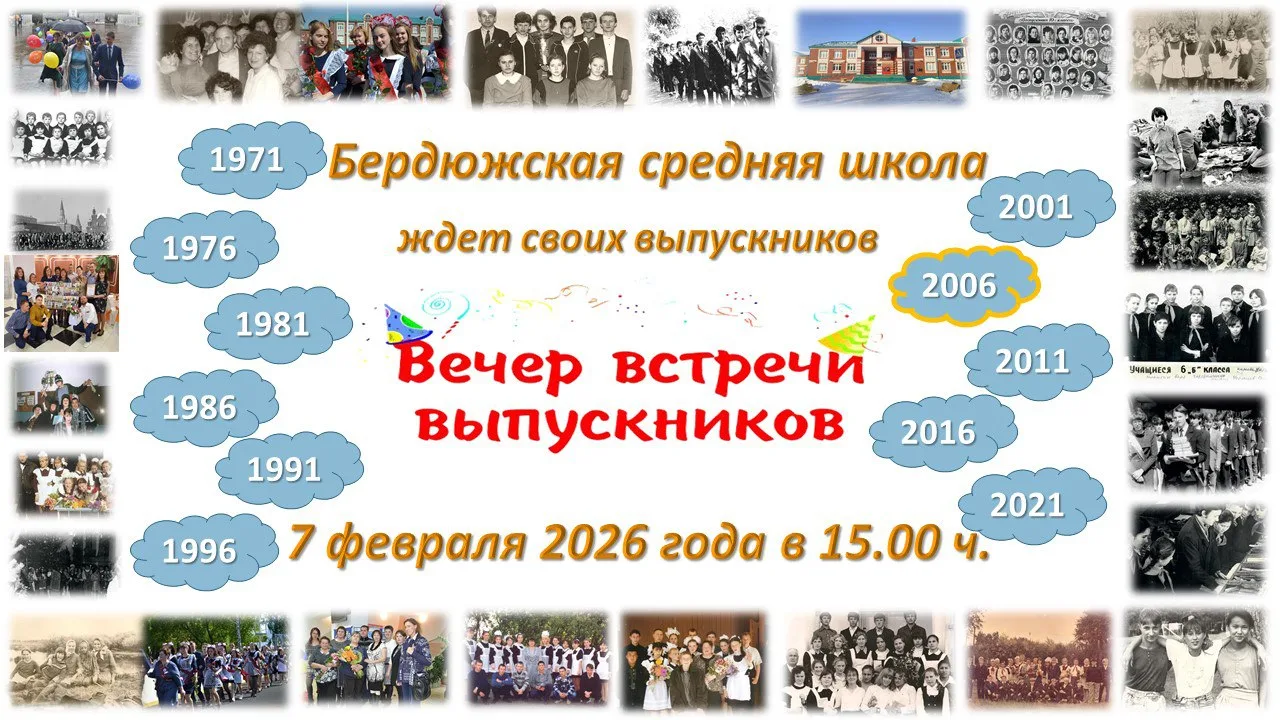 7 февраля состоится торжественный вечер встречи выпускников, который, оживит воспоминания о значимых событиях и людях, связанных с историей нашей школы. Мы приглашаем всех выпускников, особенно ждём юбилейные выпуски:1971, 1976, 1981, 1986, 1991, 1996, 2001, 2006, 2011, 2016, 2021 присоединиться к празднованию значимого мероприятия нашей школы.