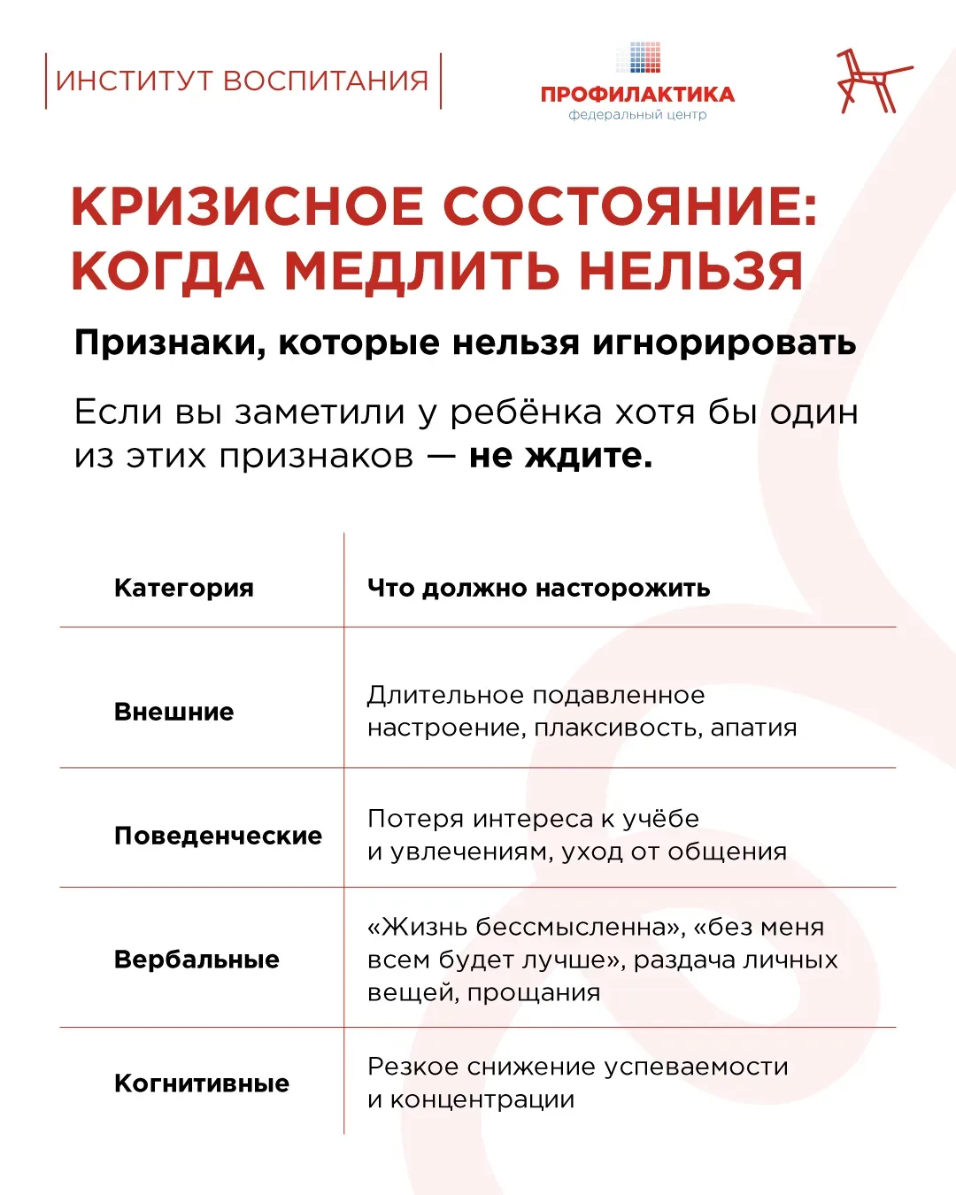 Как распознать эти сигналы и что делать? Отвечаем в карточках, которые подготовили совместно с Институтом воспитания. Сохраняйте и делитесь с родителями.