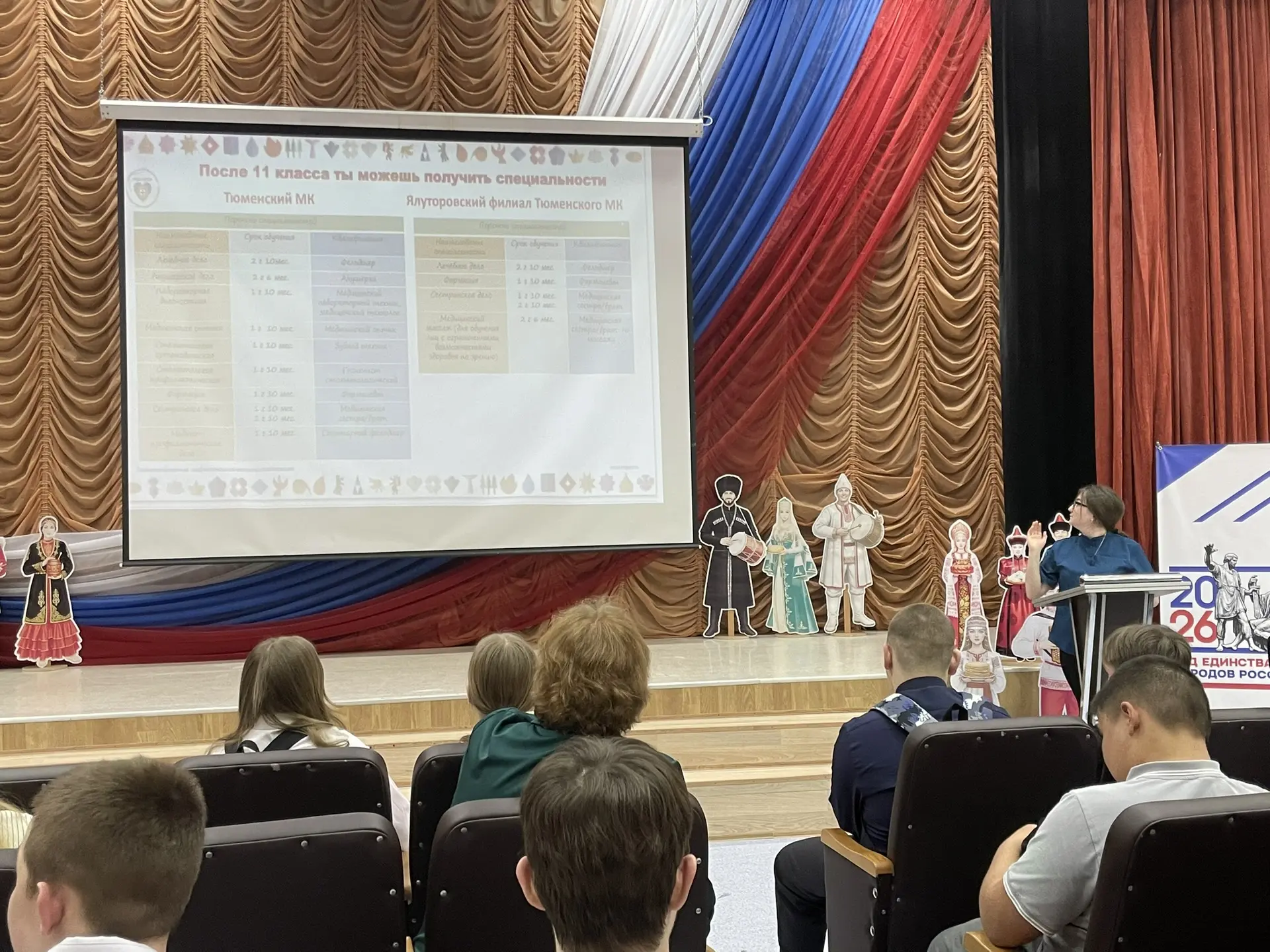 Во время встречи Фаина Николаевна рассказала о об учебных заведениях имеющие специальности и профессии, правилах приема, сроки и подачи документов. О целевом зачислении для абитуриентов медицинских колледжей .