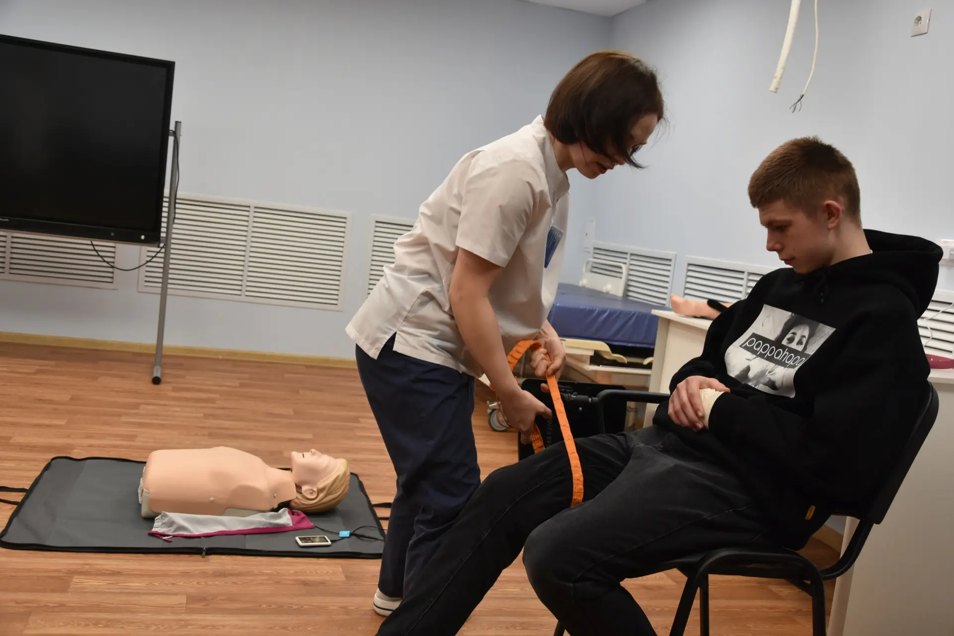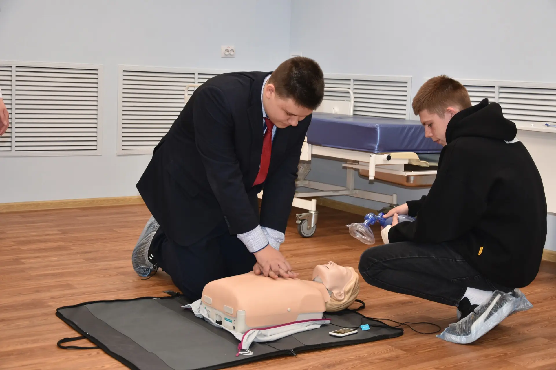 Для школьников были организованы практические занятия по оказанию первой помощи на специальных манекенах. Под руководством опытных наставников учащиеся смогли отработать базовые, но критически важные навыки, необходимые в экстренных ситуациях.