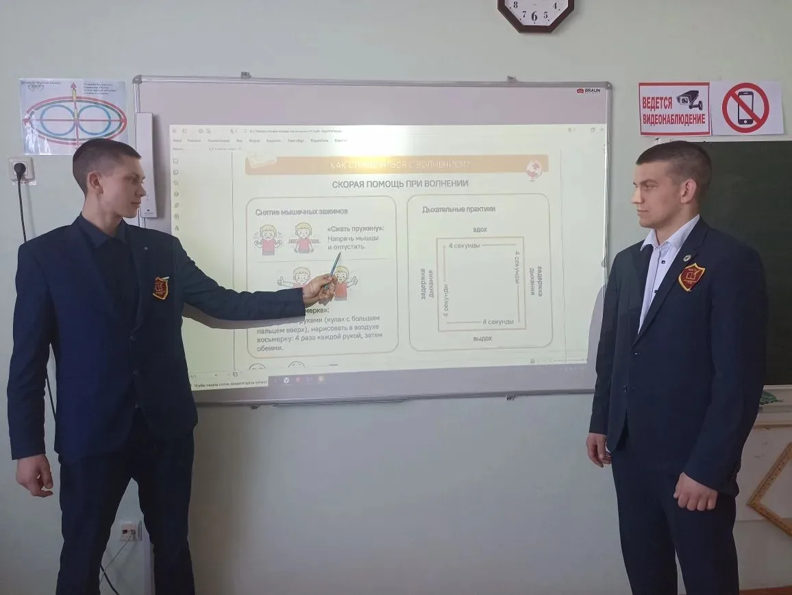 Классные руководители вместе с ребятами обсудили, почему волнение — это естественная реакция человека, в каких ситуациях оно возникает и как можно научиться управлять своими эмоциями. Поговорили о том, как поддержать себя перед важным событием: ответом у доски, экзаменом, выступлением или разговором.