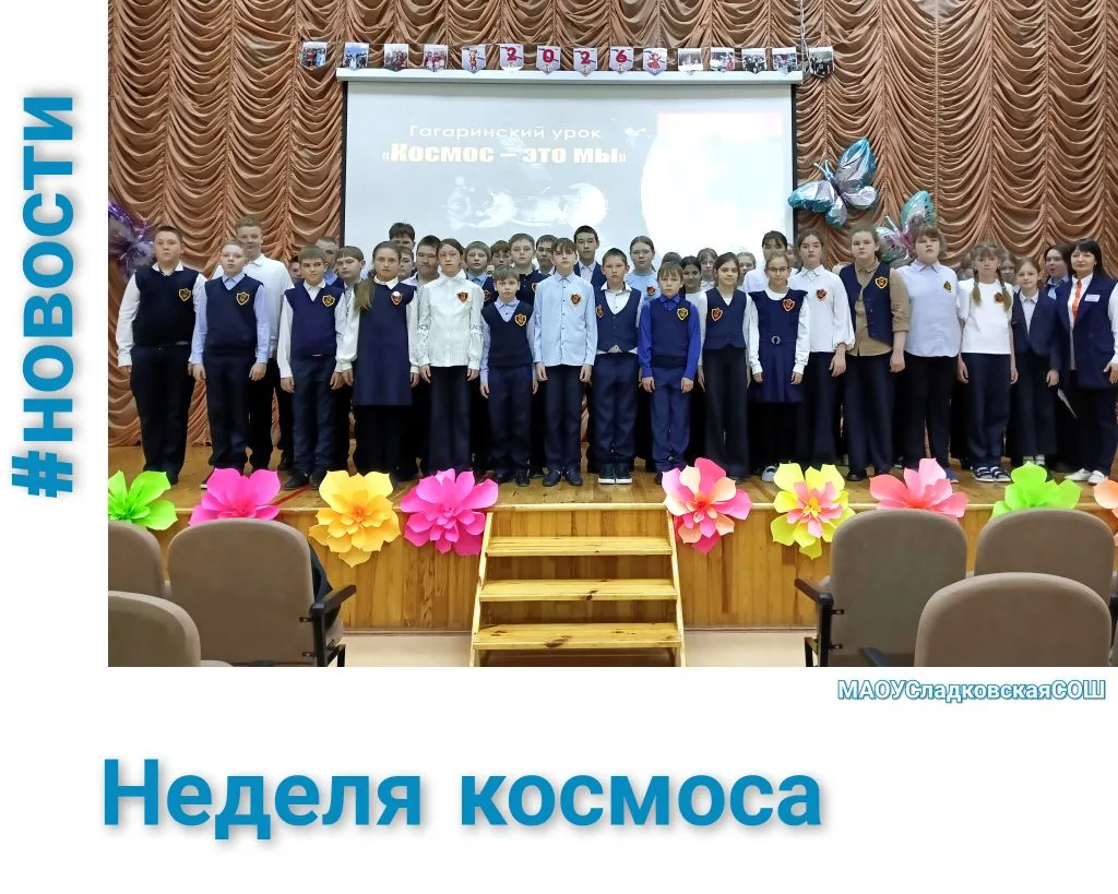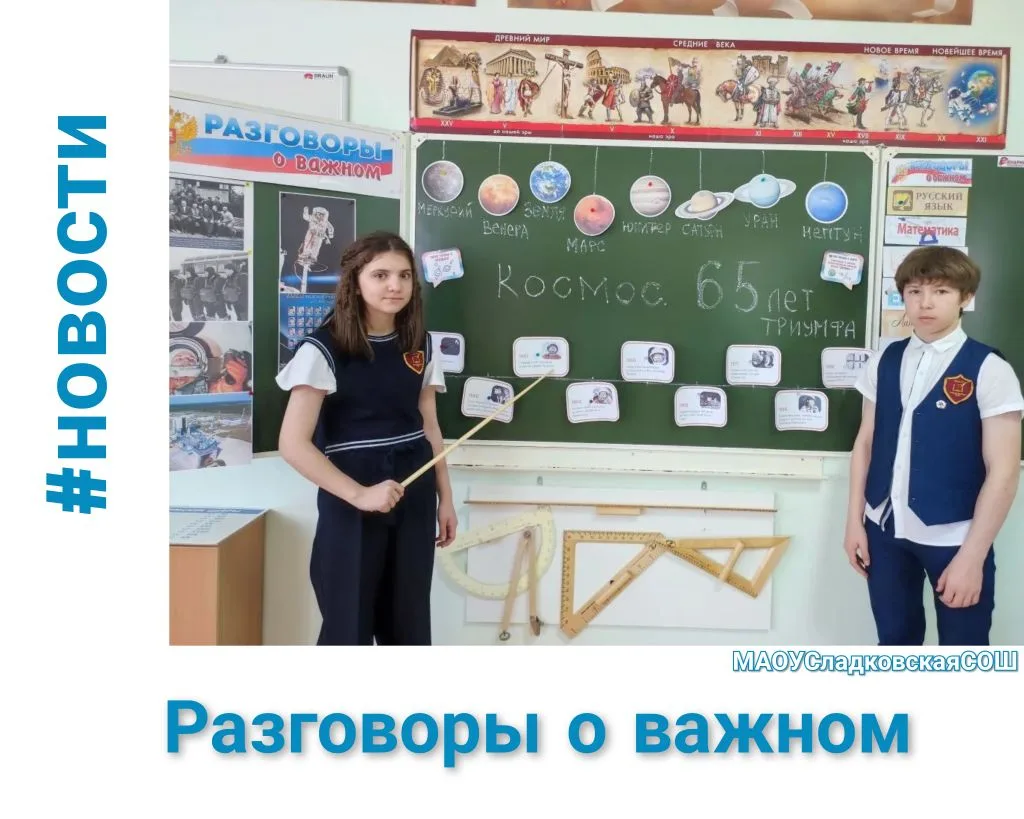 В рамках курса "Разговоры о важном" в Сладковской школе прошло занятие по теме «65 лет триумфа: Россия — крылья человечества», посвященное Дню космонавтики.