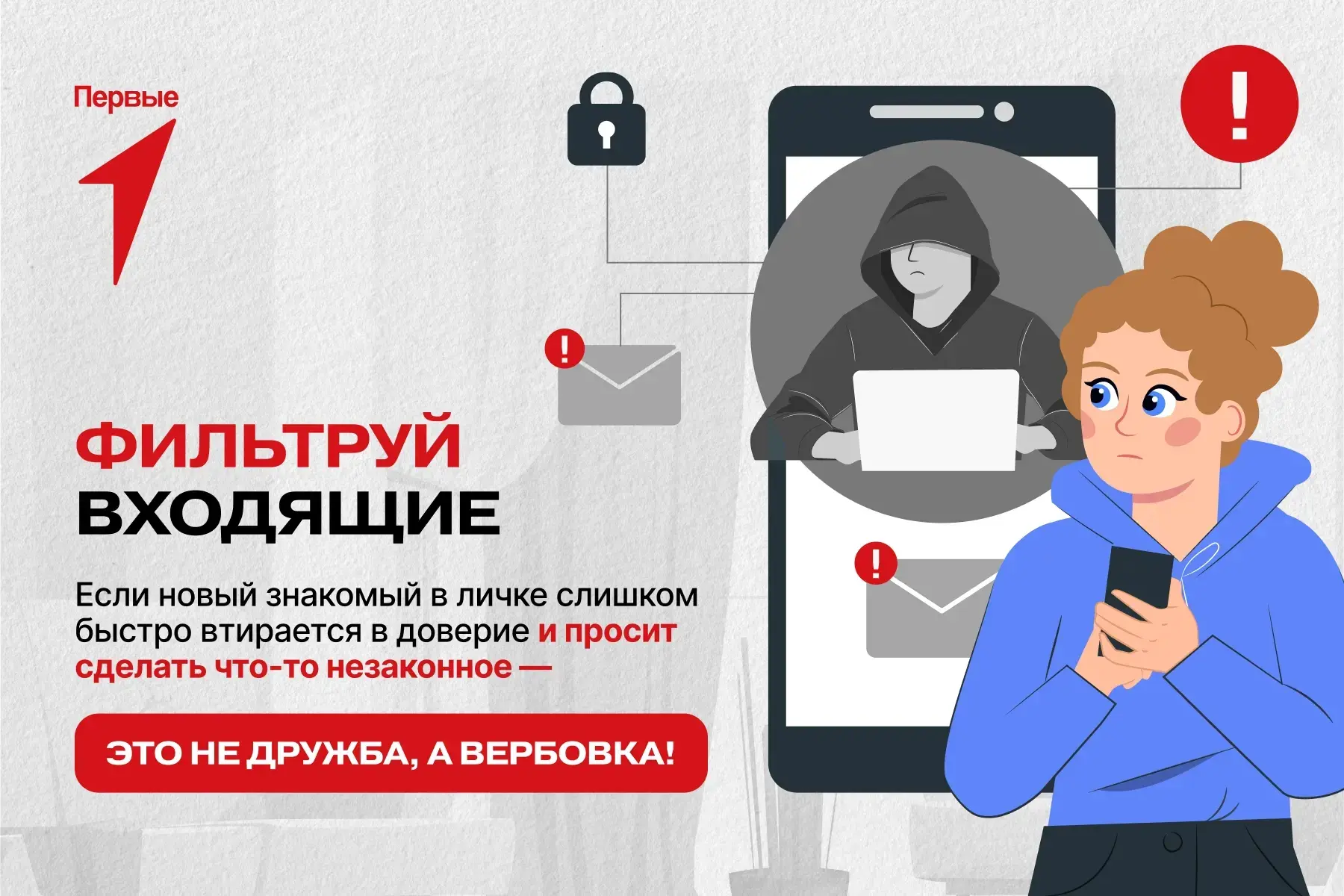 Читай на карточках Первых советы о том, как не стать жертвой вербовки!