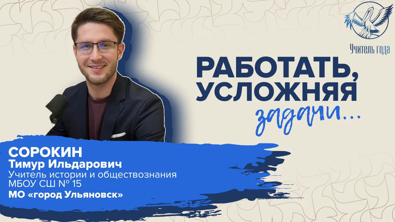 🔹Сорокин Тимур Ильдарович, учитель истории и обществознания средней школы № 15 имени Героя Советского Союза Дмитрия Яковлевича Старостина города Ульяновска