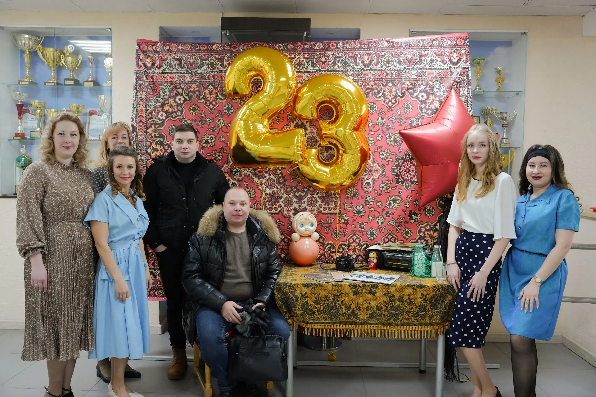 Женсовет встретил мужчин в нарядах 80-х годов, создавая атмосферу праздника и ностальгии. Для сотрудников была организована тематическая фотозона, где можно было запечатлеть этот день. Кроме того, всех ждали угощения и памятные фотокарточки, которые останутся приятным напоминанием о празднике.