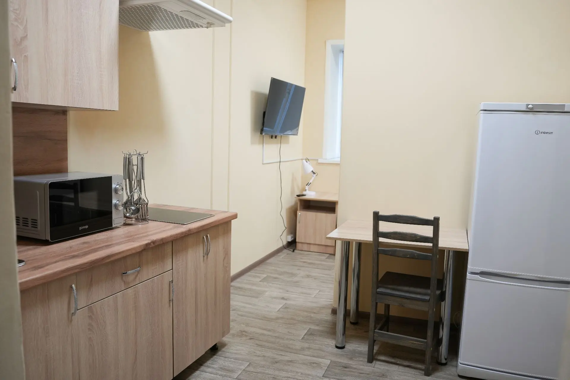 -Кухня, полностью оборудованная необходимой бытовой техникой и разнообразной посудой, что позволяет готовить любые блюда;