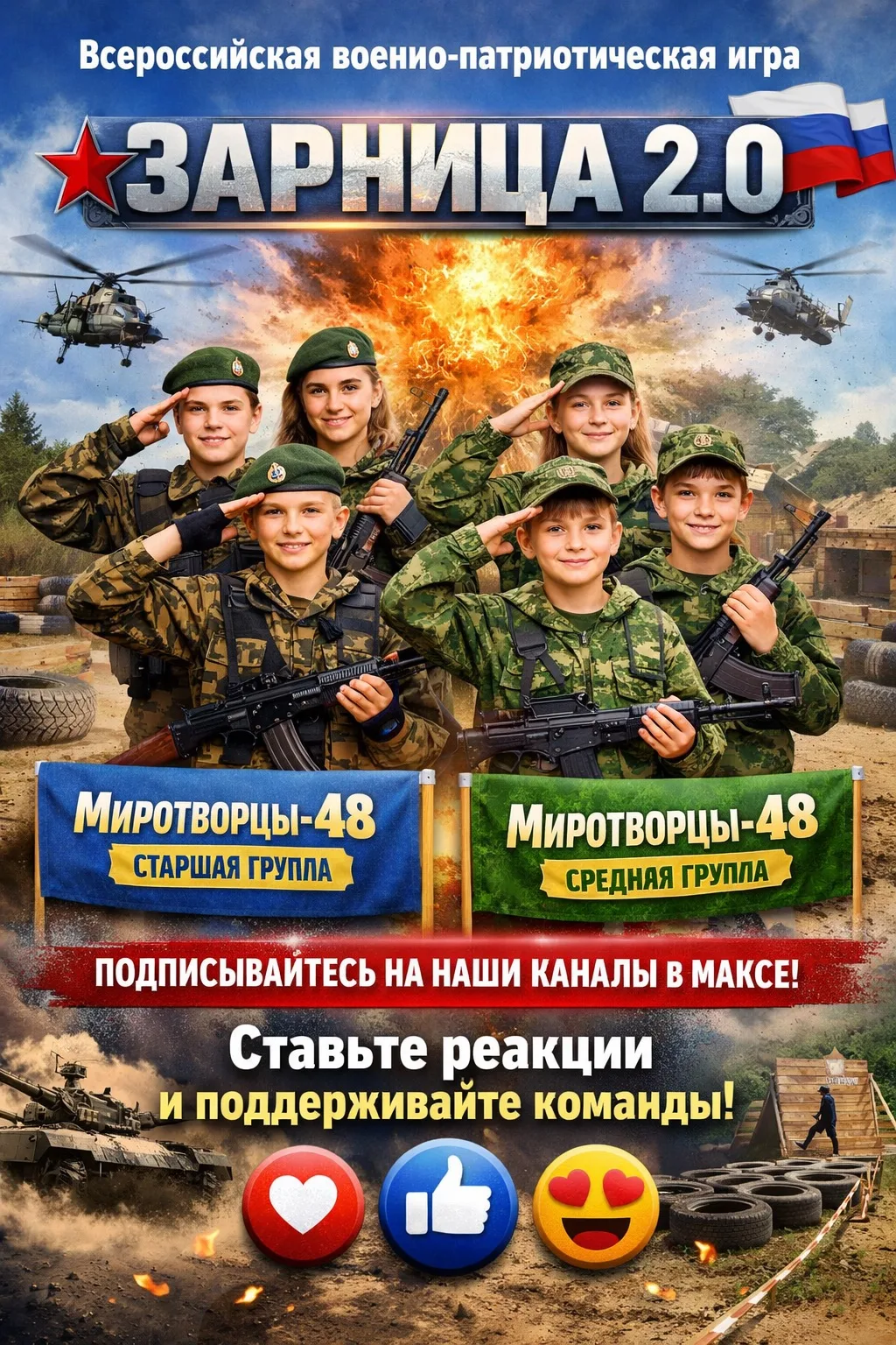 Команды нашей школы МОУ СОШ №48 — «Миротворцы-48» (старшая группа) и «Миротворцы-48» (средняя группа) — принимают участие в масштабной игре «Зарница 2.0»! 💪