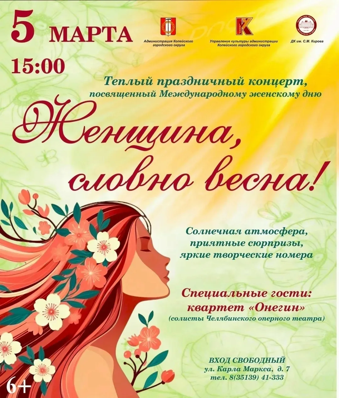 07.03.2026 года в 18.00 в ДК им. С.М. Кирова состоится концерт «Дудук и орган. Шедевры классики» в рамках проекта «Театрально – концертный зал». В программе концерта выступят профессиональные музыканты – лауреаты международных конкурсов Аргишти (Санкт-Петербург), Екатерина Русакова-Данилова (Новосибирск). Стоимость билета – 350 рублей..