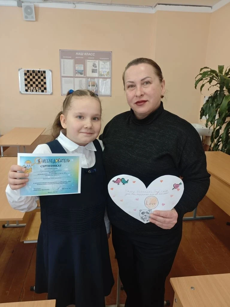 Полина успешно защитила свою исследовательскую работу на секции «Иностранный язык» на тему: «Создание праздничных поздравительных открыток на английском языке: изучение лексики и грамматики через творчество» (руководитель: учитель английского языка, Жуланова П.А.)
