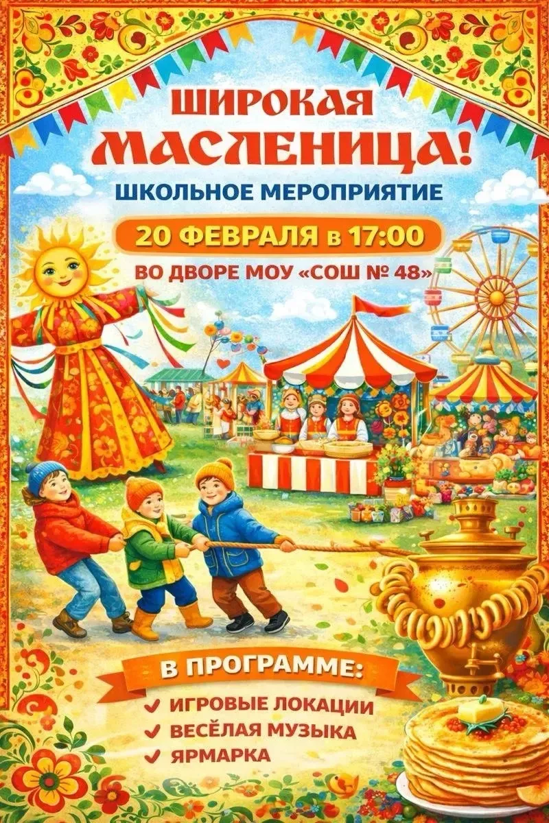 Во дворе школы развернётся яркий праздник с народными забавами, музыкой и задорным смехом. Вас ждут игровые локации, мастер-классы, тёплая атмосфера и, конечно же, вкусная ярмарка со сладостями, домашней выпечкой 🥨 и горячими напитками.