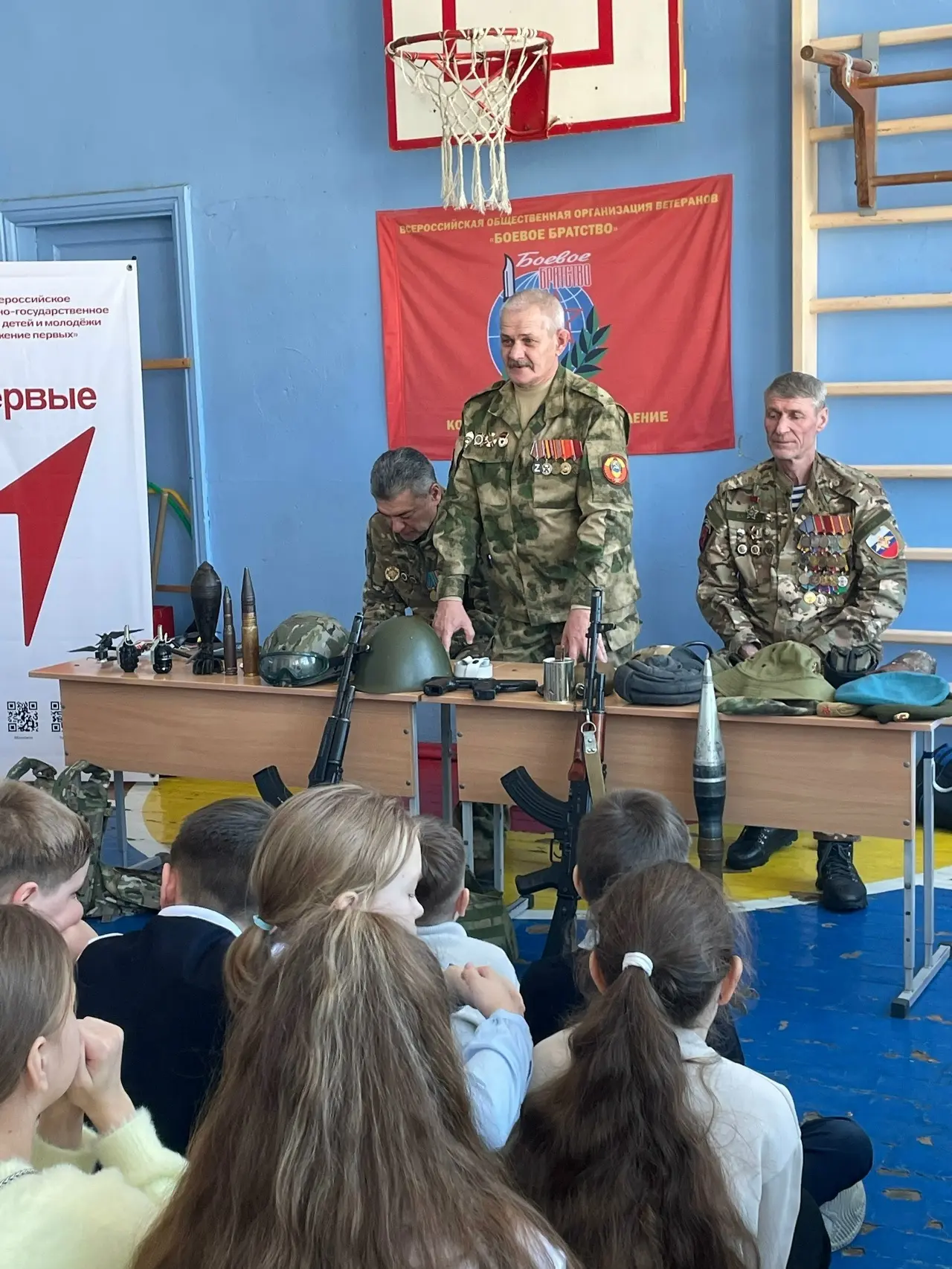 Во время встречи они поделились своими воспоминаниями о службе в армии и участии в боевых действиях, рассказали с каким трепетом и теплом читали и хранили письма за «ленточкой», написанные ребятами для них, ведь в трудные минуты так важна поддержка. Рассказали о своей службе в зоне Специальной военной операции, в горячих точках - Чечне и Афганистане, о трудностях и испытаниях, с которыми приходилось сталкиваться каждый день, но главное - о бесценном опыте товарищества, взаимовыручке и верности воинскому долгу! Также для ребят была организована выставка со снаряжением, боеприпасами и снарядами. Дети с любопытством и увлечением разглядывали, интересовались и даже примерили военное обмундирование. Слова гостей произвели сильное впечатление на ребят, они поняли, что настоящие герои живут рядом!