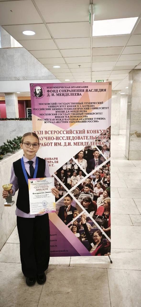 С 30 января по 1 февраля в Москве прошёл XXII Всероссийский конкурс научно-исследовательских работ имени Д. И. Менделеева. В этом году конкурс объединил участников из 60 регионов Российской Федерации, а также гостей из Республики Беларусь и Республики Казахстан. Свои исследования представляли участники 25 секций по самым разным направлениям науки — от естественно-научных до гуманитарных.