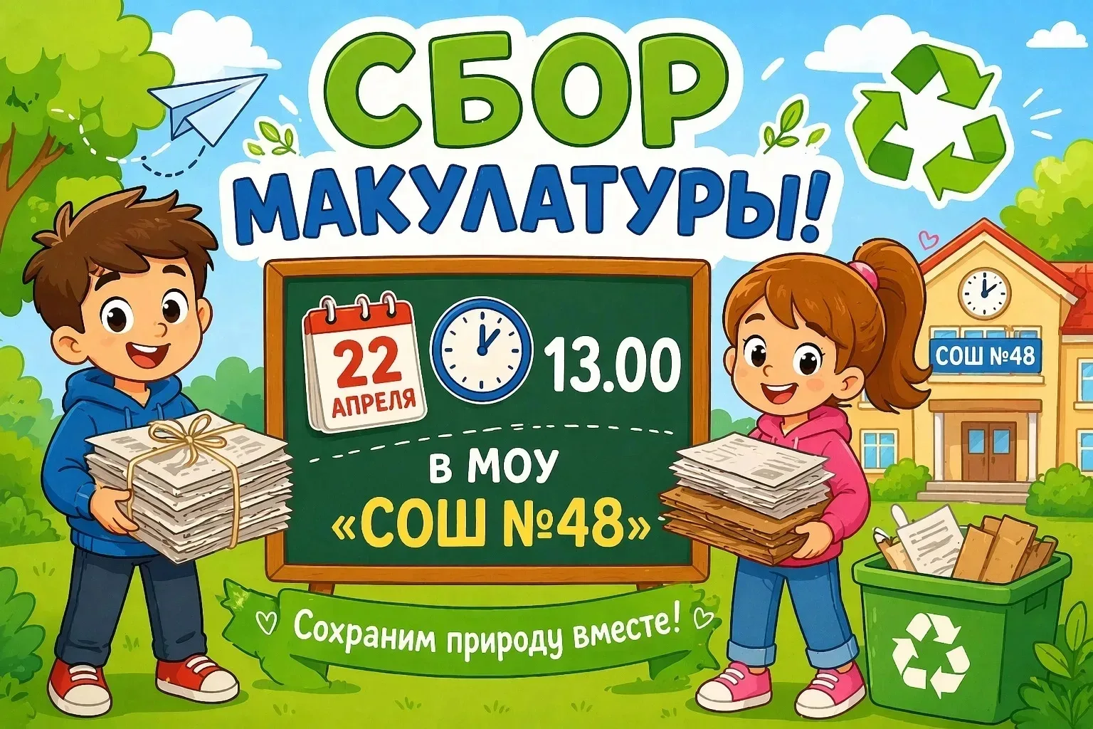 Внимание‼️ В МОУ «СОШ № 48» объявляется сбор макулатуры