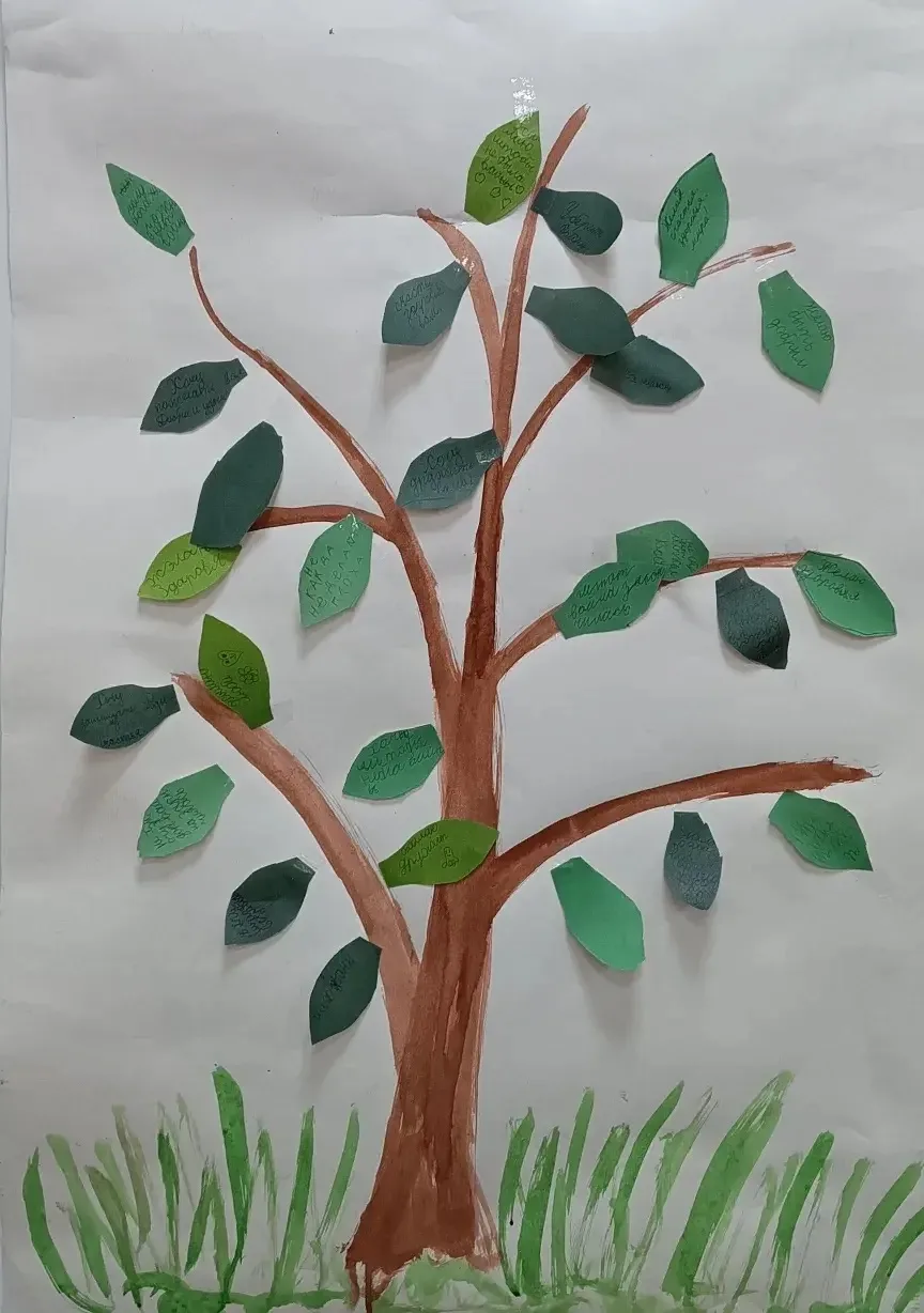После просмотра специального адаптированного видео, которое рассказывает о важности памяти и доброты, ребята создали общее «Дерево доброты». На его ветвях расцвели листочки с самыми главными детскими пожеланиями: «Пусть никогда не будет войны», «Всем мира», «Солнца и смеха», «Давайте дружить и не ссориться».