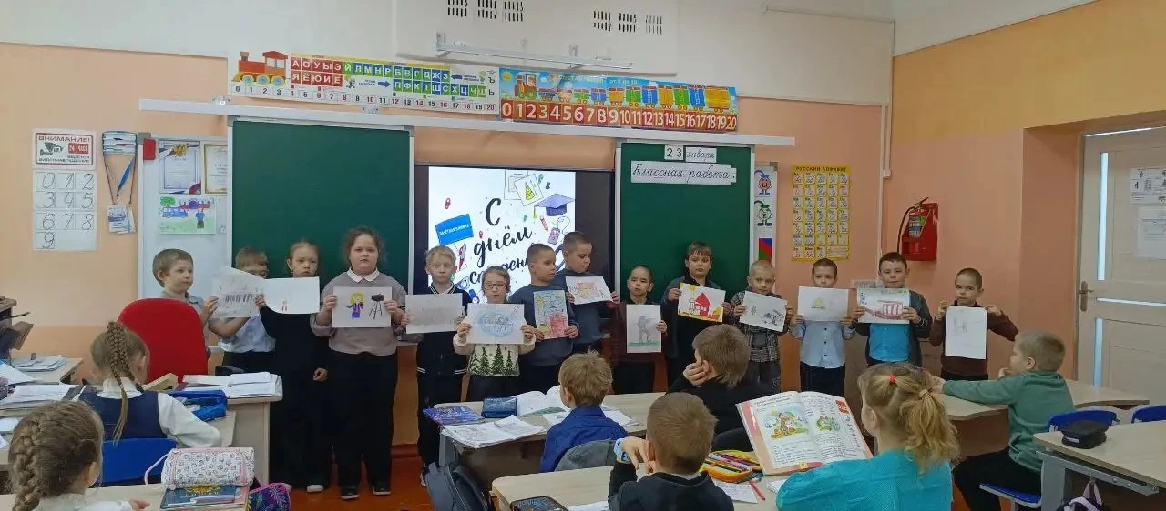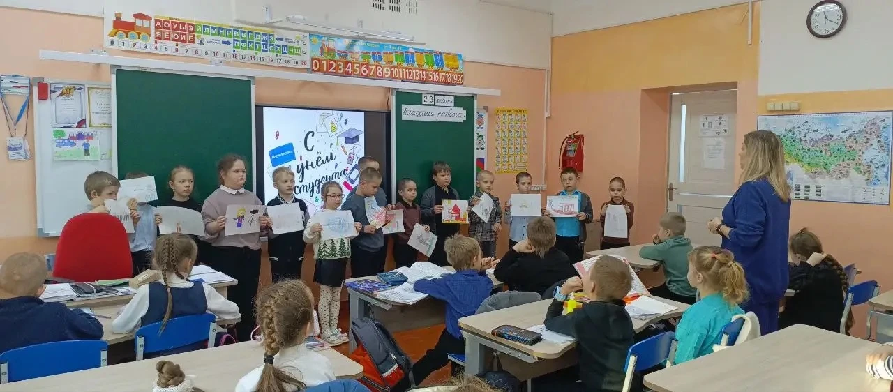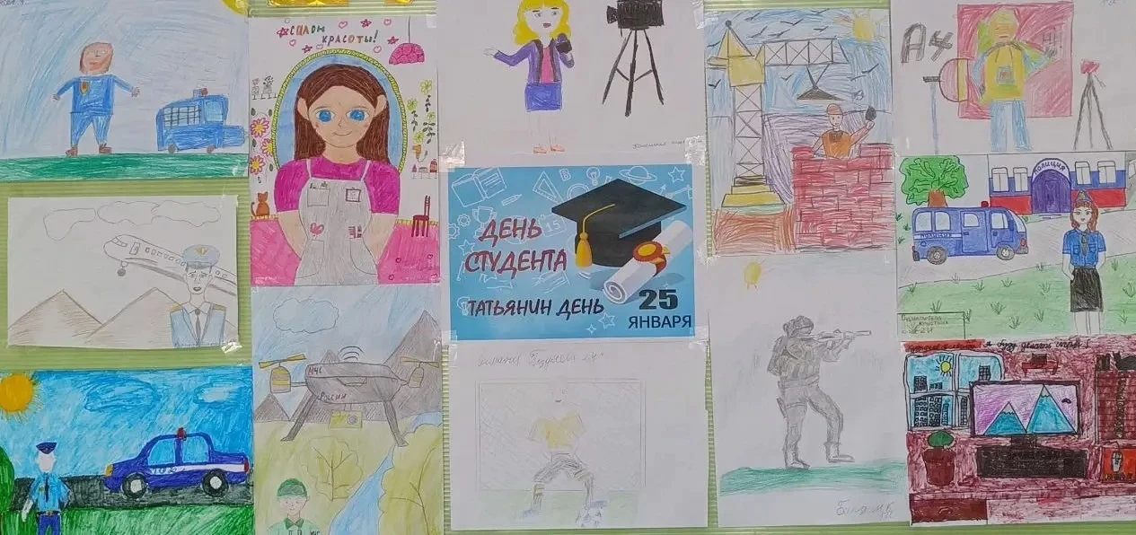 В нашей школе прошла Всероссийская акция «Шаг в студенчество», посвящённая Дню российского студенчества! Ученики начальных классов с помощью красок и карандашей заглянули в своё будущее. Они создали яркие рисунки, изобразив себя в образе врачей, учёных, педагогов, инженеров и других специалистов на своих рабочих местах.